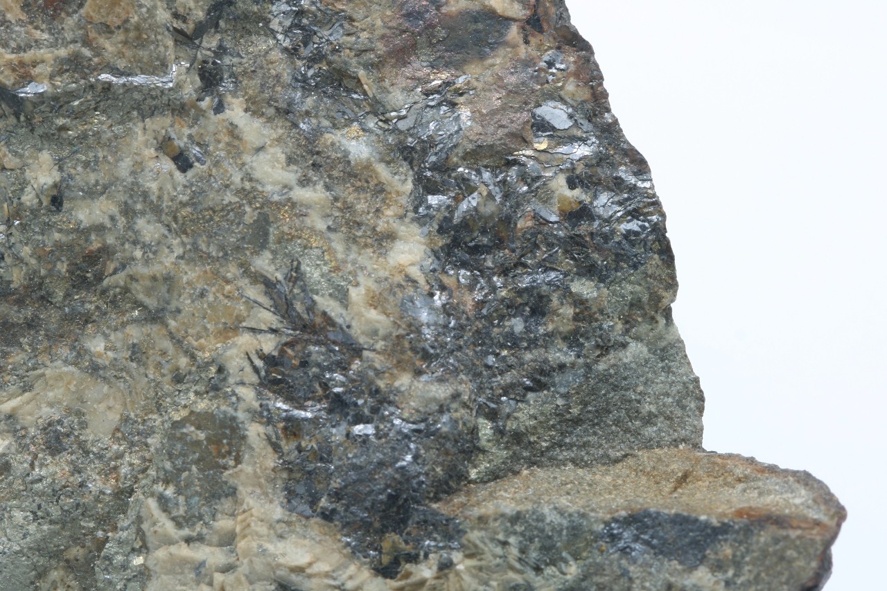 Glänzende schwarze Kristalle von Mangan-Titan-Oxid aus Chvaletice.