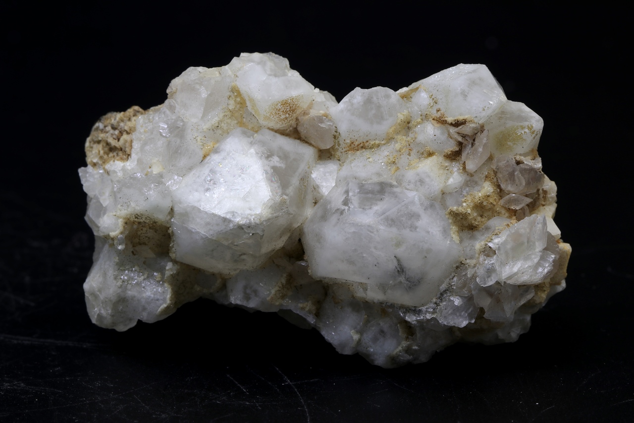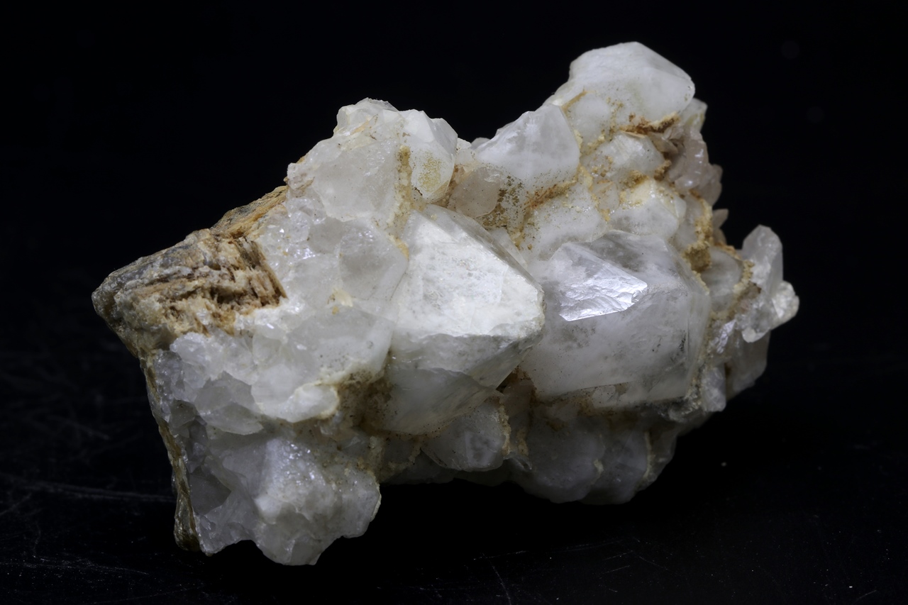 In der Probe stechen zwei dominante, faszinierende Quarzkristalle mit den Abmessungen 2 x 1,5 und 2,3 x 1 cm hervor. Darüber hinaus ist Siderit farblich zonal gefärbt .