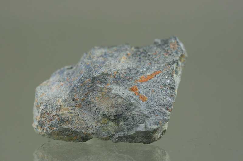 Realgar aus der tschechischen Lokalität Jáchymov. Probe von orange-roten Aggregaten des Realgars.