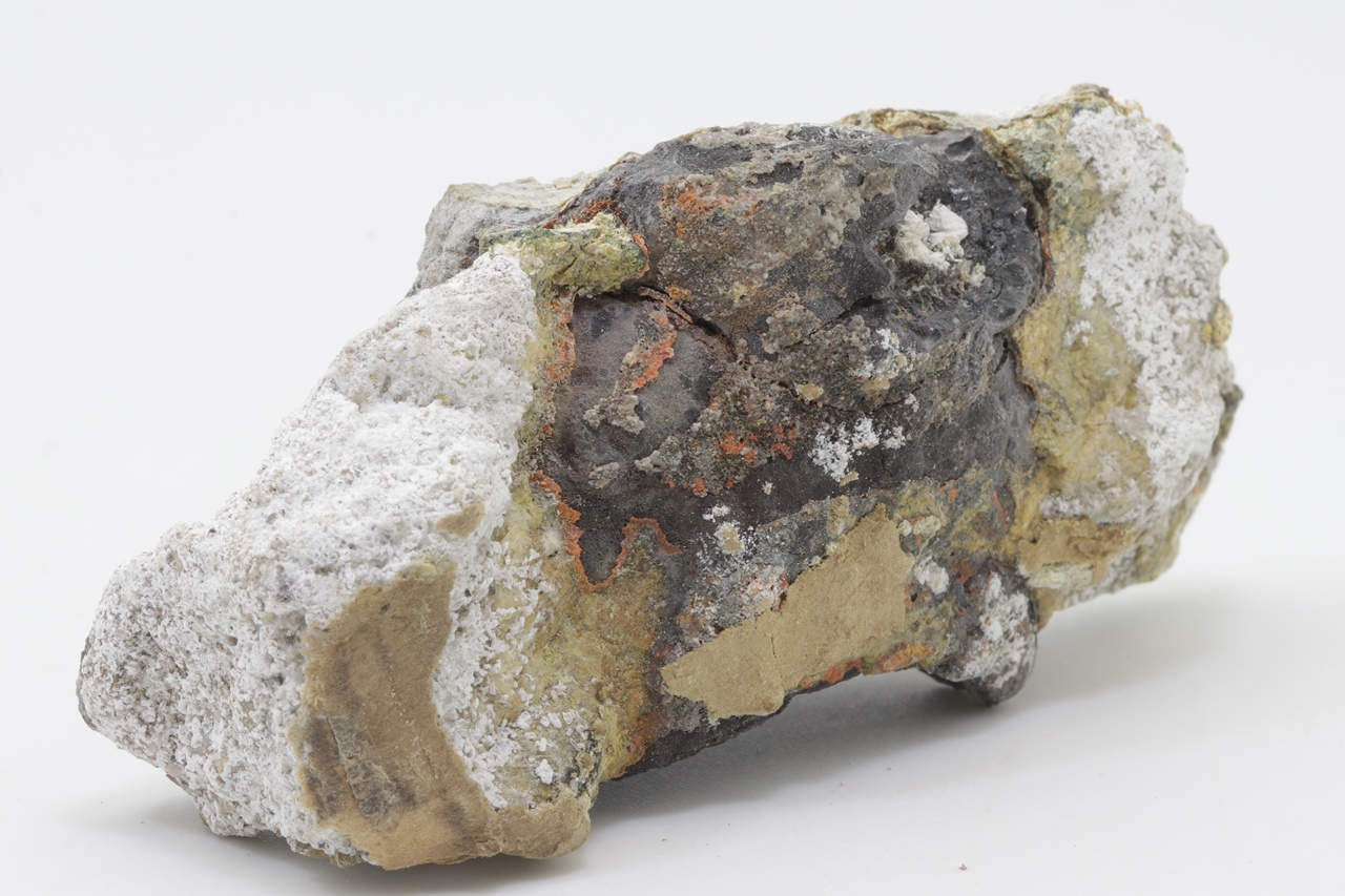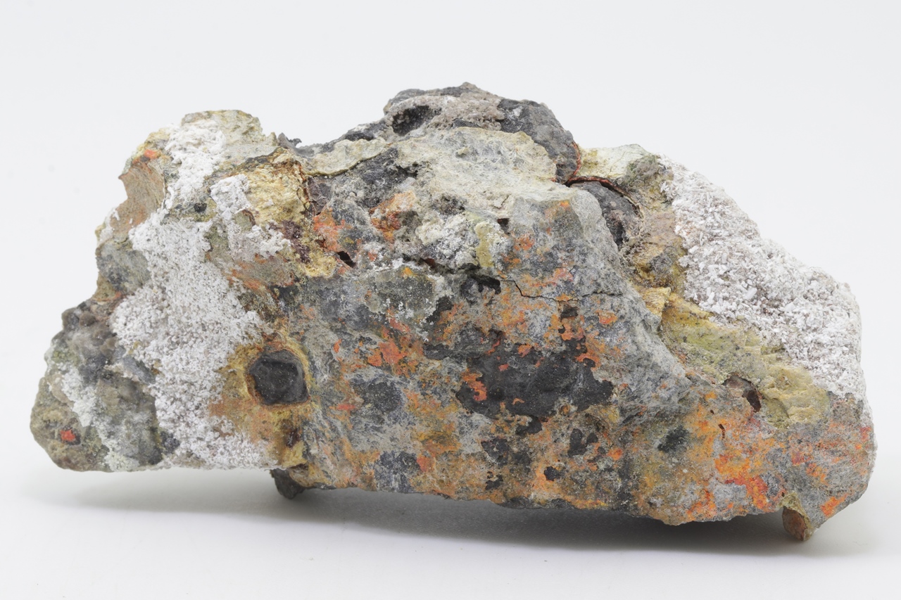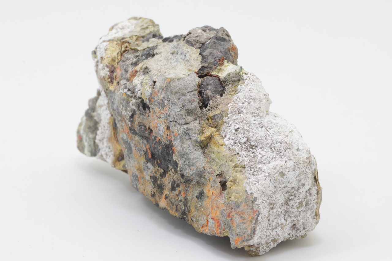 Orange Realgar-Wachstum auf schwarzem Arsen.