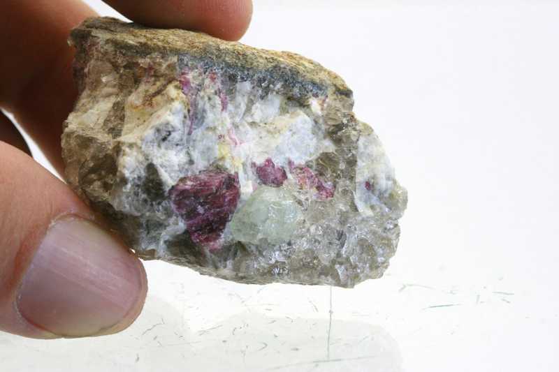 Schönes Beispiel von Liddicoatit zusammen mit Rhodizit aus Madagaskar. Pegmatitprobe mit seltenem Turmalin – Liddicoatit und Borat Rhodizit aus Madagaskar.