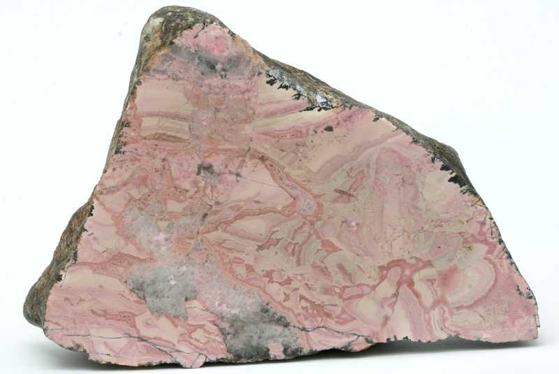 Poliertes Rhodochrosit aus Cavnic. Schöne Textur des Mangan-Karbonats.