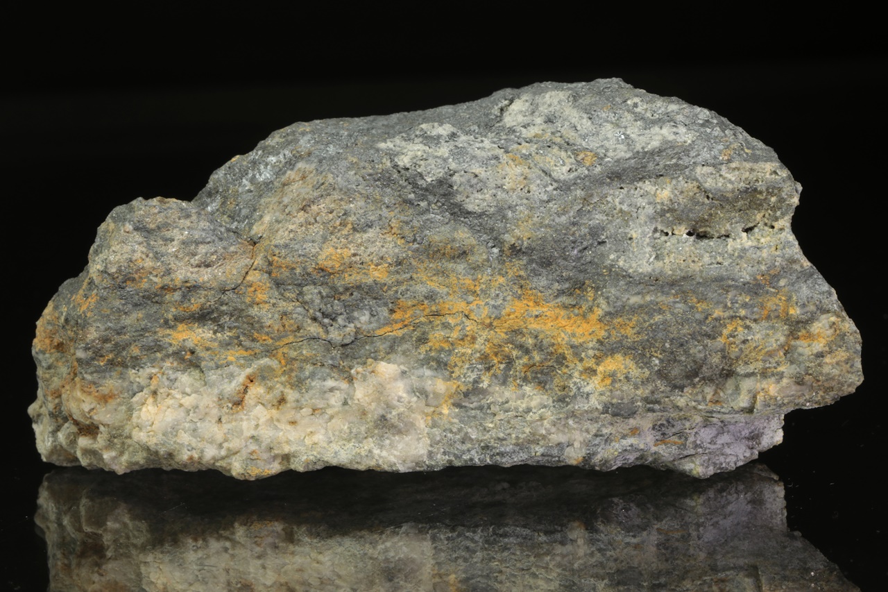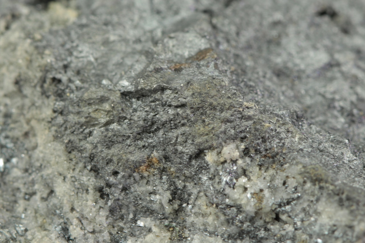 Robinsonit aus dem Stollen Ludovít, eine seltene Probe von bleigrauem Sulfantimonit-Blei.