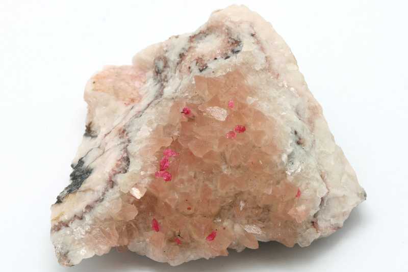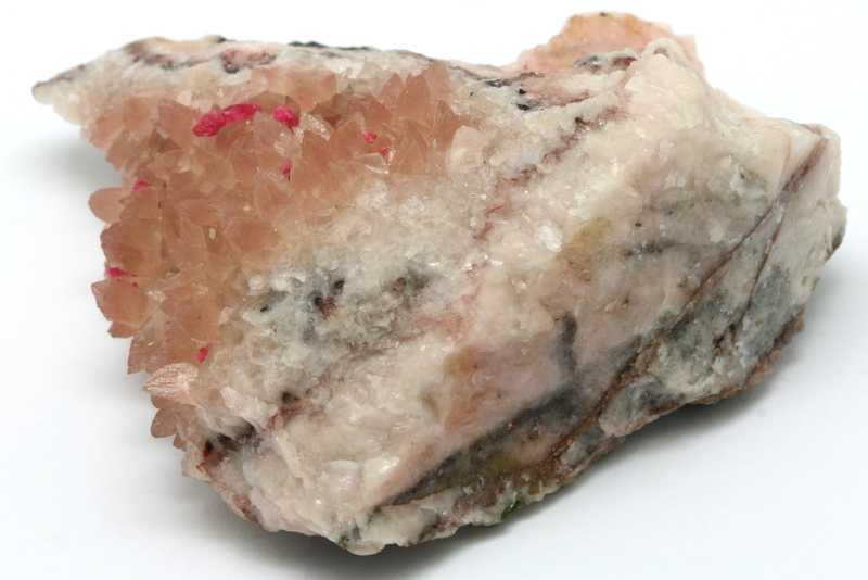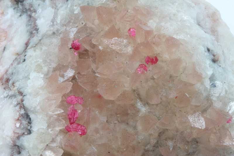 Ein Beispiel für den seltenen Arsenat von Kobalt und Calcium Roselit aus der Lokalität Bou Azzer. Beispiel für rosa Kristalle des seltenen Roselits mit einer Größe von bis zu 5 mm.