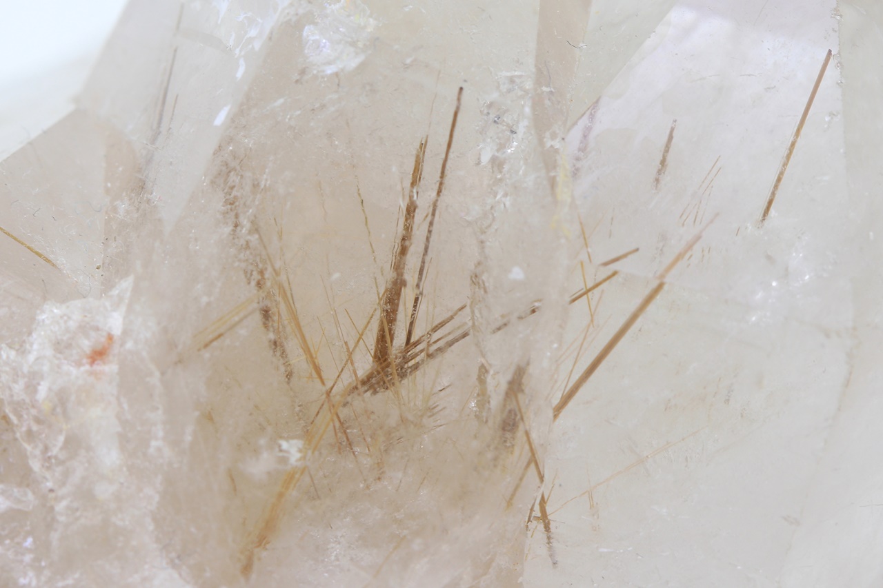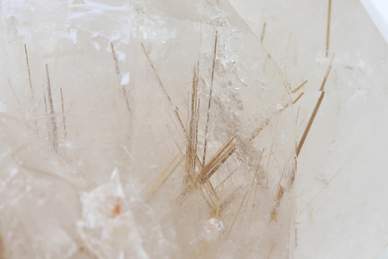 Krystal Křišťálu se zarostlými jehlicemi zlatého Rutilu.