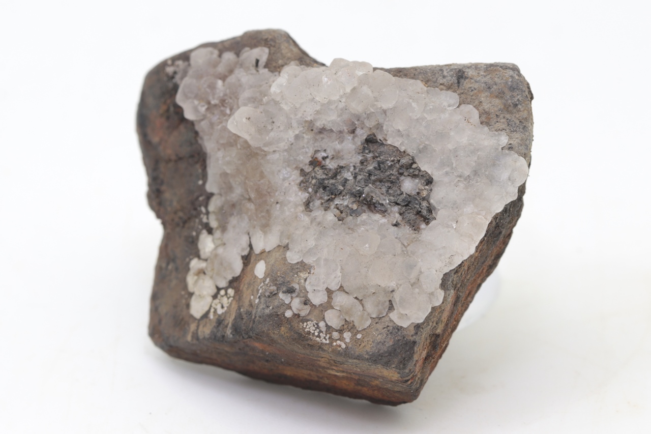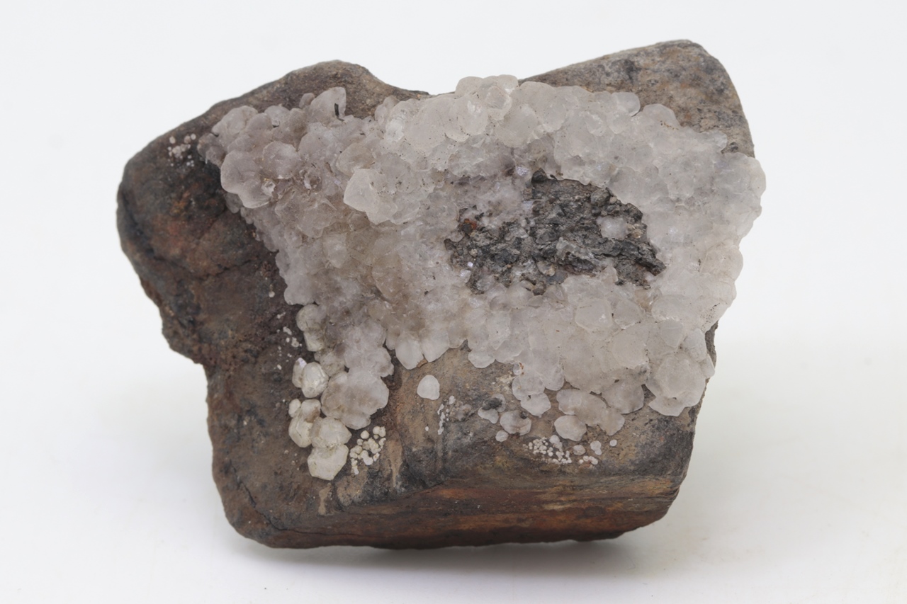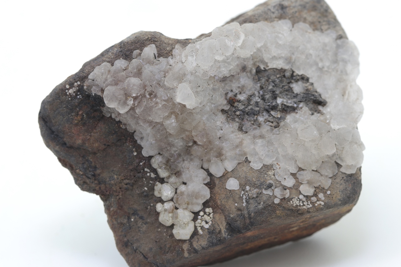 Salmiak bildet farblose bis grauliche, durchscheinende, unregelmäßige Kristalle, die auf ein Substrat aufwachsen. Die einzelnen unregelmäßigen Kristalle wachsen aufeinander und durchdringen sich gegenseitig. Die Salmiakprobe stammt aus der tschechischen Lokalität Kladno.