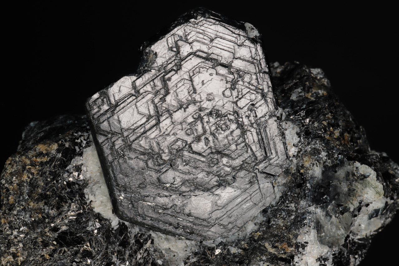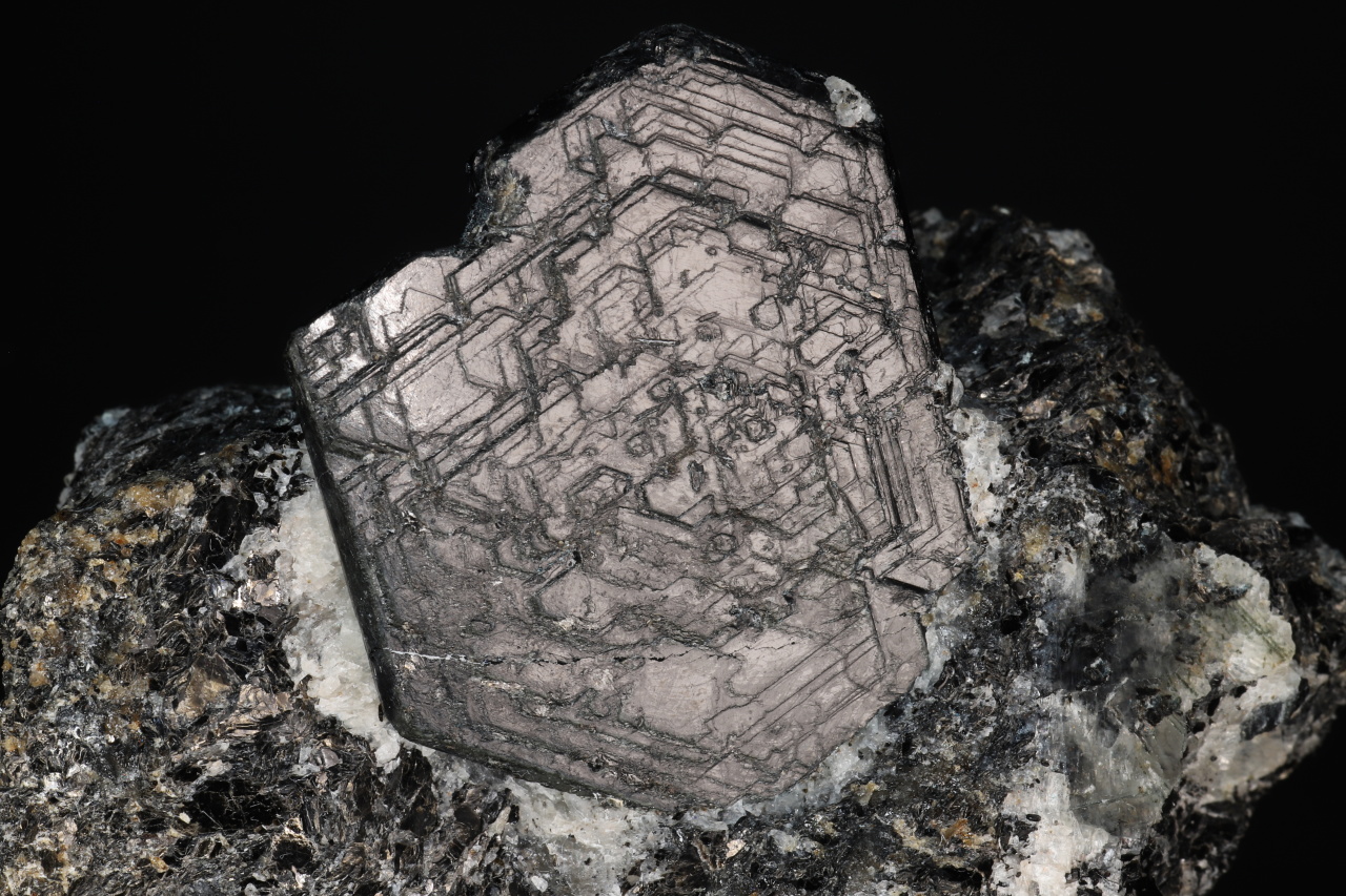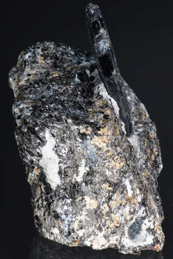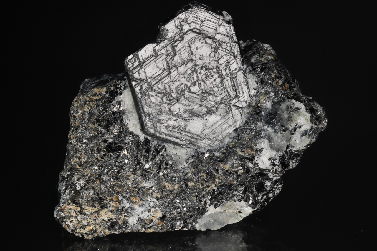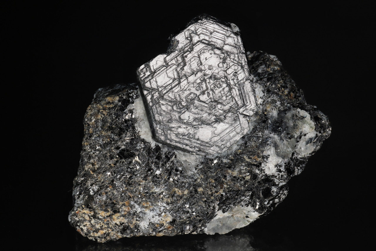 Ein perfektes Beispiel für seltenen Saphirin in Form von flachen, extrem großen Kristallen, die aus neuen Funden in Madagaskar stammen. Saphirin ist ein Silikat, das in den meisten Lagerstätten weltweit nur in Form von kleinen Körnern vorkommt. Er wurde nach der Ähnlichkeit zum Saphir benannt, nicht nur in seiner kristallinen Form, sondern auch in der blauen Farbe, die für einige Saphirine charakteristisch ist. Die angebotene Probe ist ein flacher, dunkler Kristall, der aus biotitischem Gestein präpariert wurde. Die Größe des Kristalls beträgt 4 cm, an der oberen Seite gibt es eine kleine Kontaktstelle mit einem anderen fehlenden Kristall, sonst ist der Kristall vollständig. Der Kristall wurde für die Präparation schonend stabilisiert, war aber nie abgebrochen oder herausgefallen. Die Saphirinkristalle aus der Fundstätte Morafeto sind definitiv die besten und bei weitem größten Kristalle dieses sonst systematischen Minerals weltweit. Es handelt sich um eine perfekte Sammlerprobe.