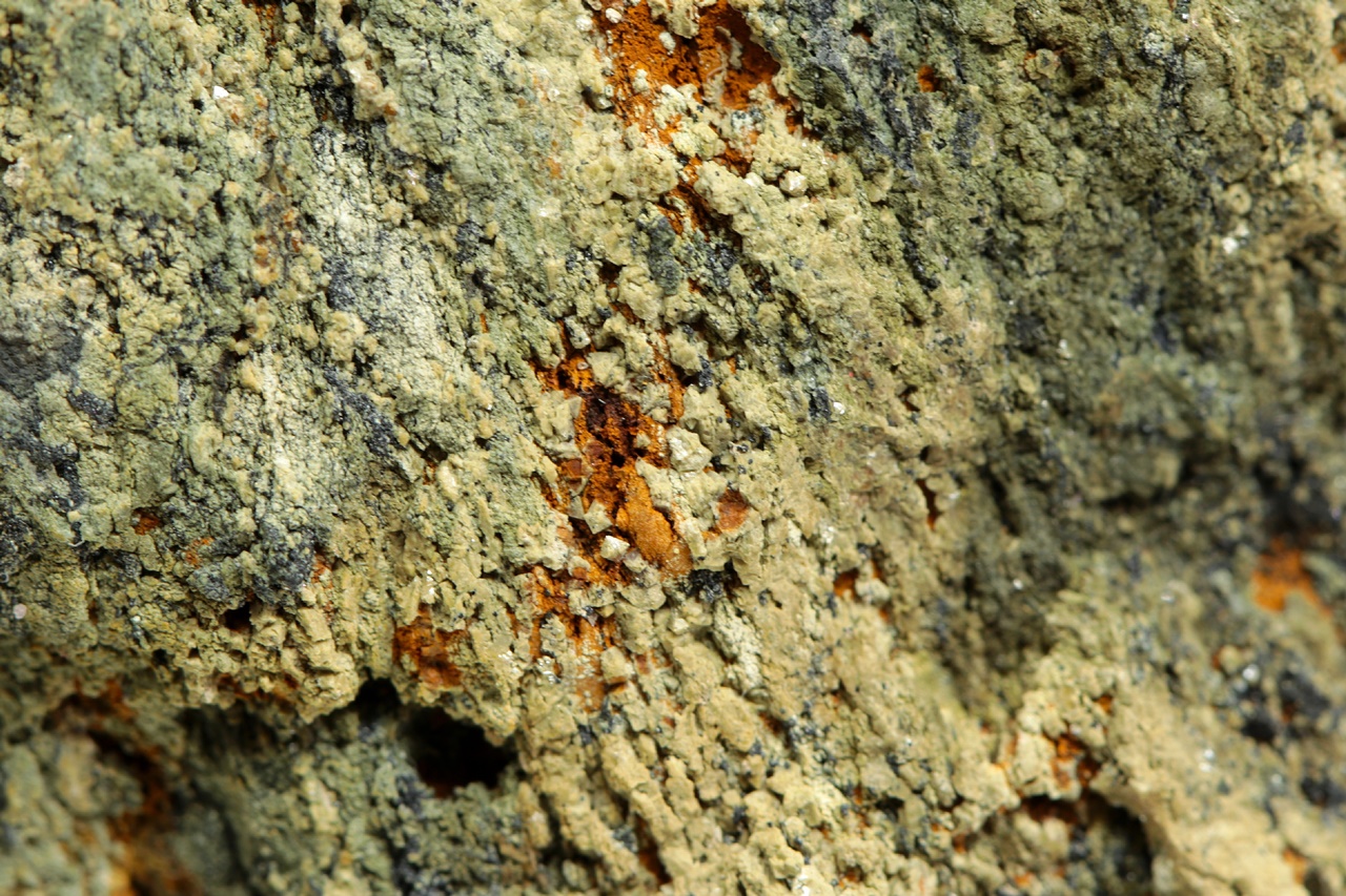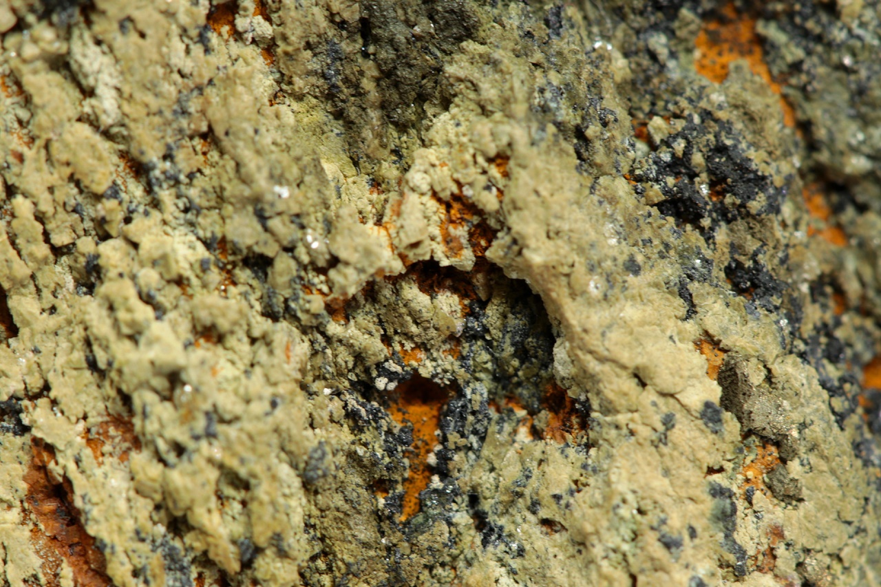 Béžové oktaedrické krystaly vzácného hydroxidu hořčíku a cínu – schoenfliesitu. Krystaly jsou necelý milimetr velké.