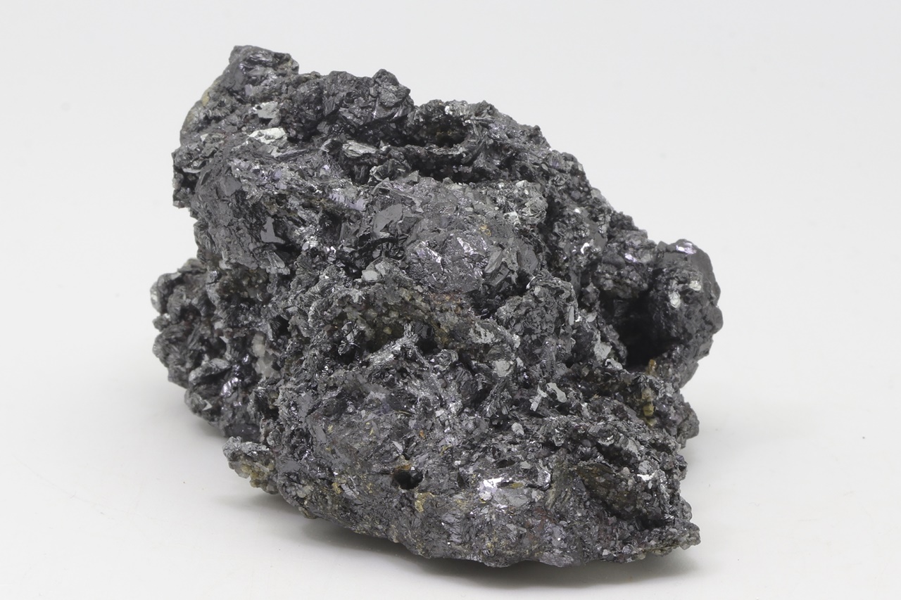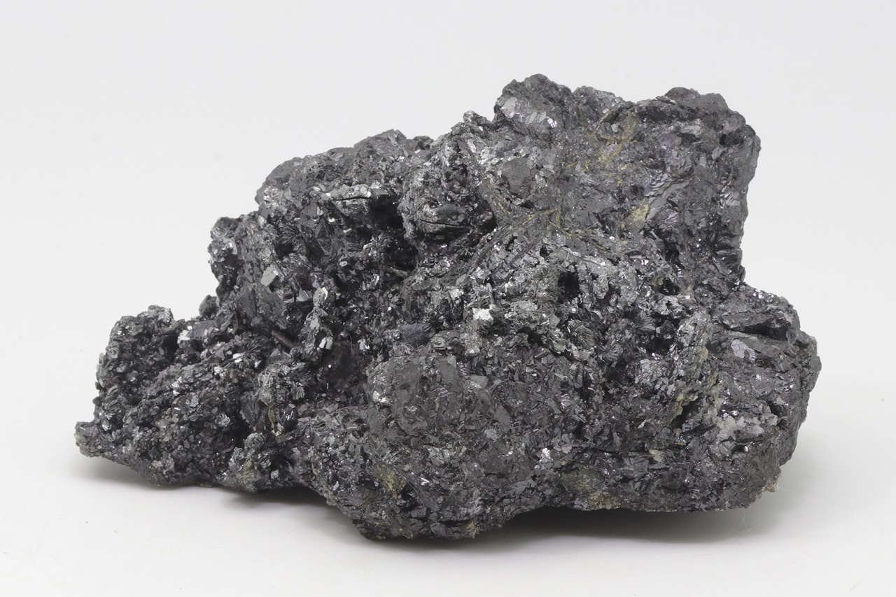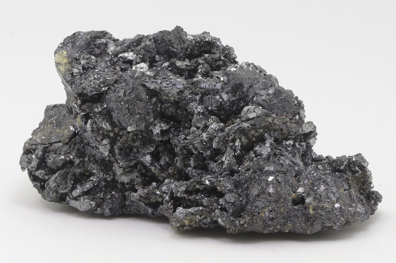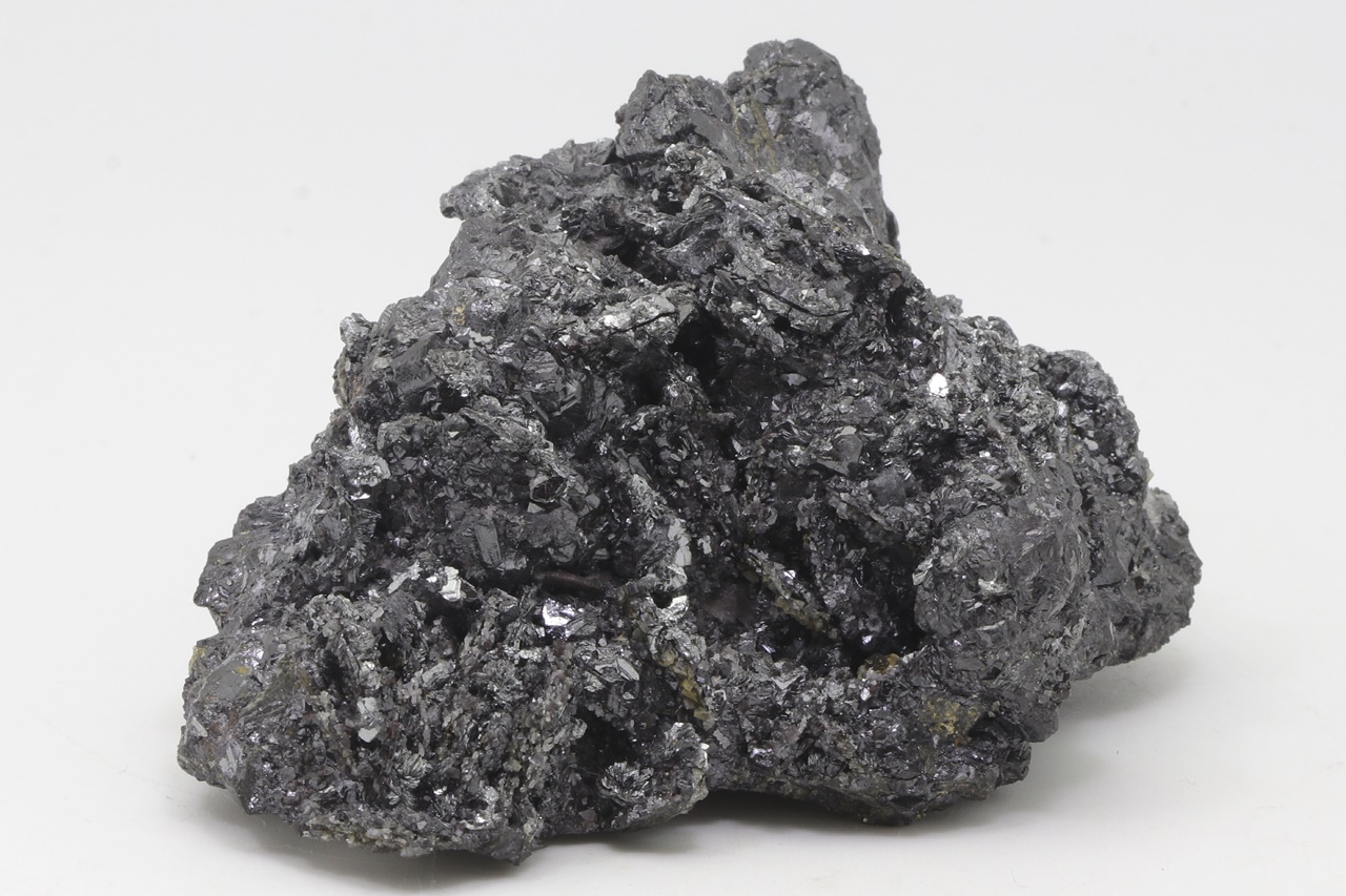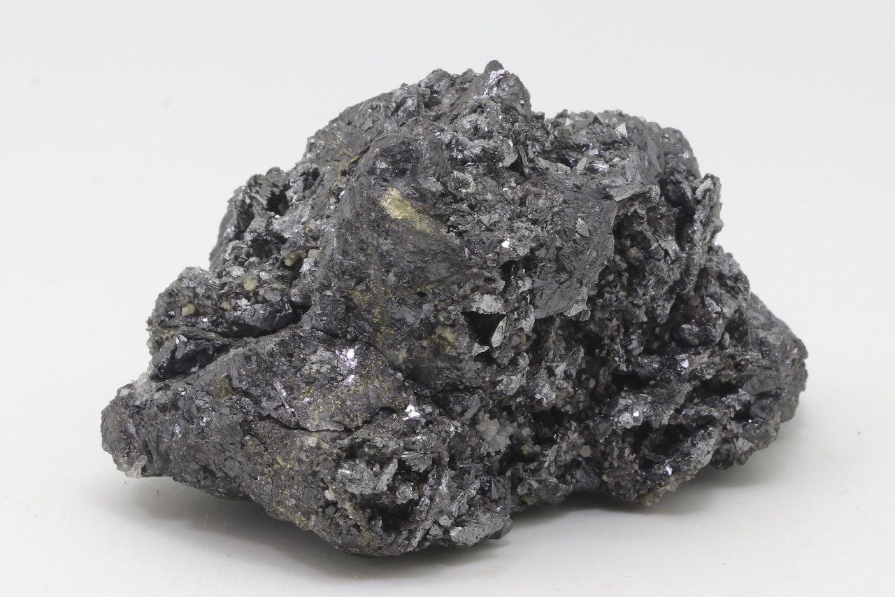 Sehr reicher Muster fächerförmiger Aggregate von tabularem Semseit, der auf schwarzem Sphalerit gewachsen ist.