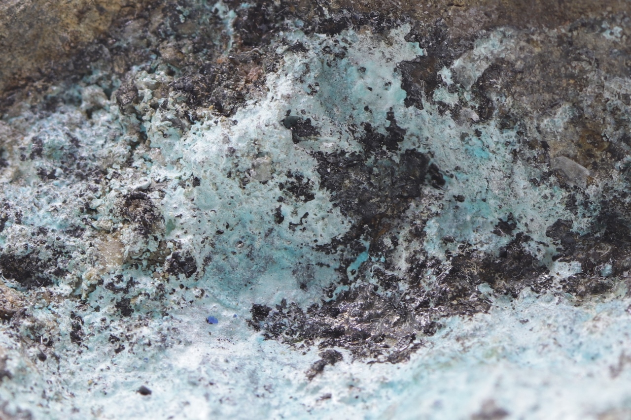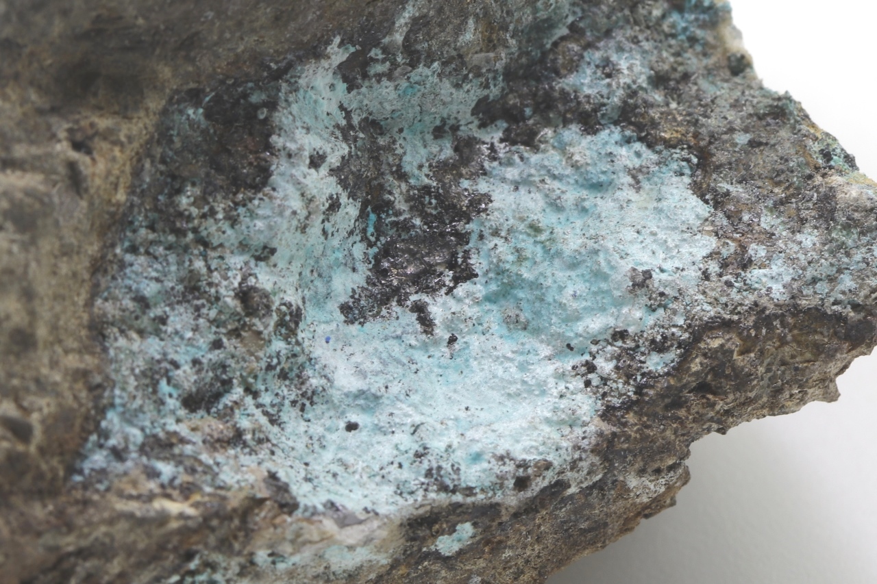 Beschichtungen aus hellblauem Kupfer- und Zinksulfat.