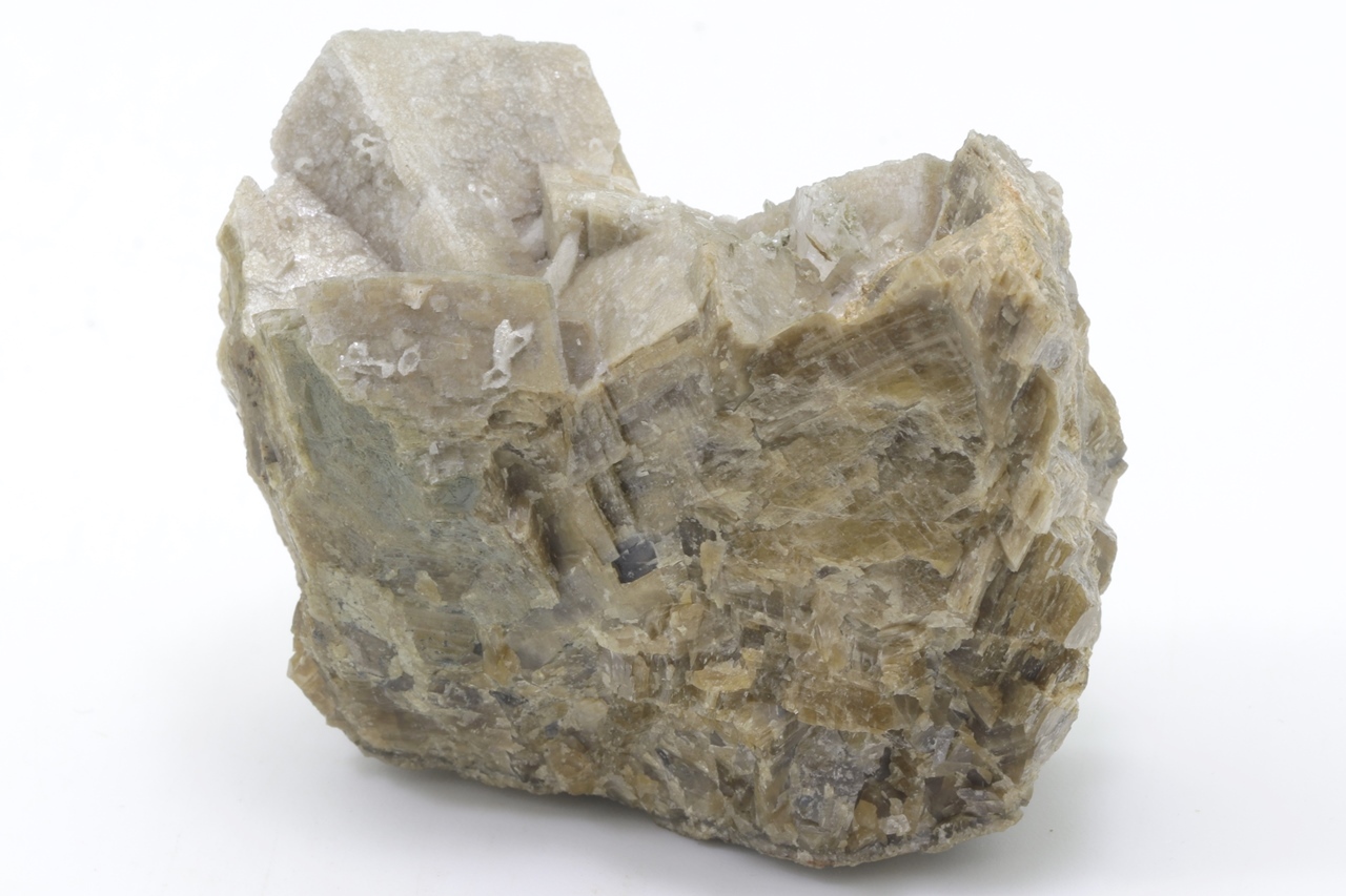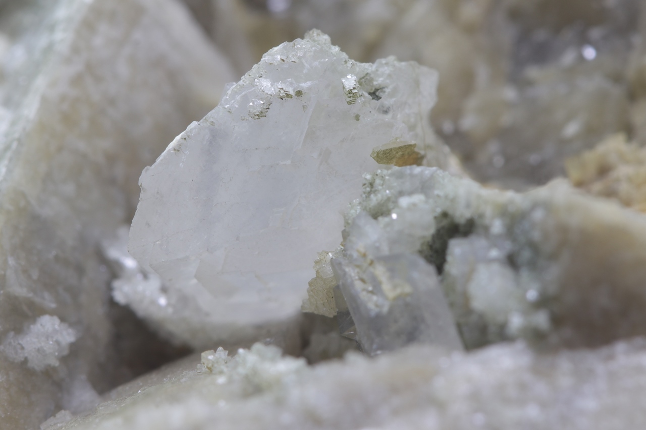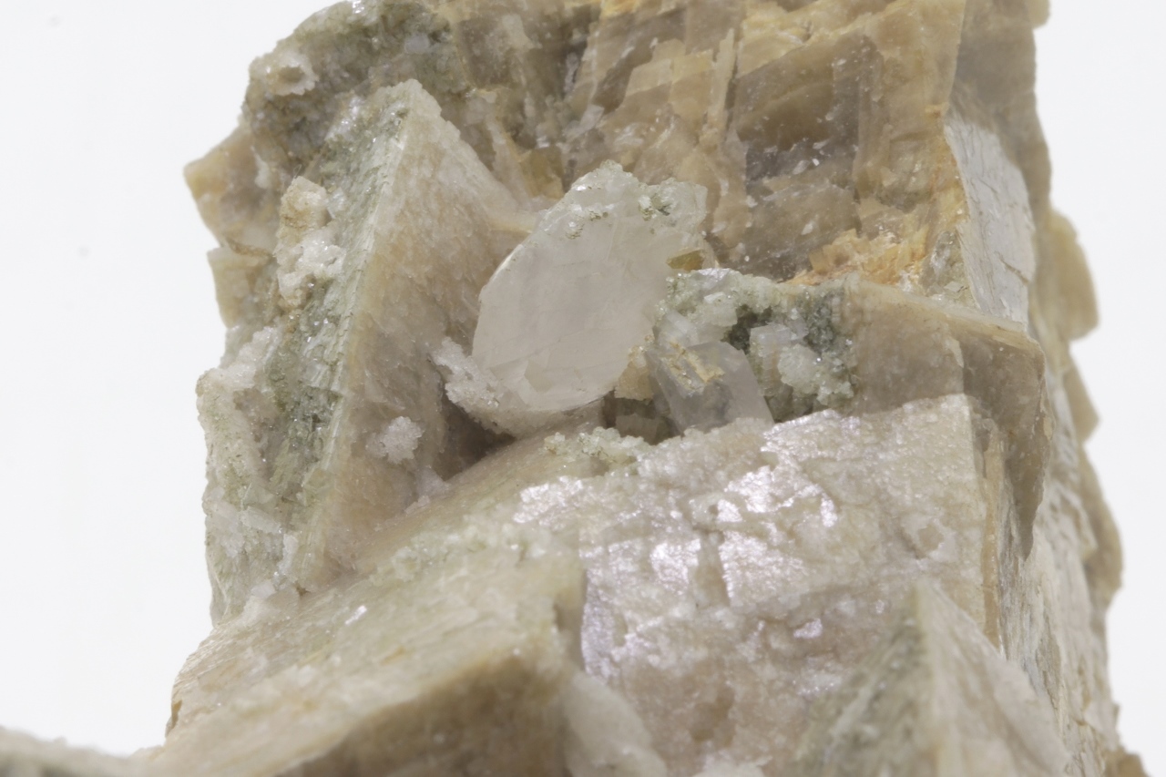 Beige Knollen von Siderit bedeckt mit weißem Kalkspat (der größte Kristall ist 9 mm).