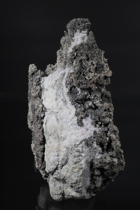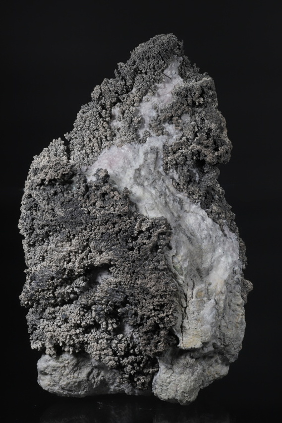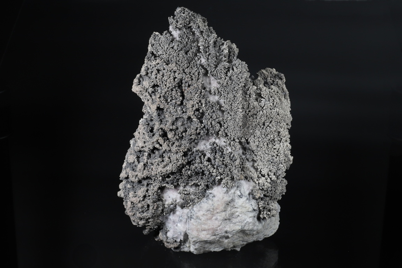 Ein extrem reichhaltiges und einzigartig großes, über 5 kg schweres Stück, das aus strauchförmigem Silber besteht, das reichlich weißen Kalcit durchwächst, aus dem das Silber professionell geätzt wurde. Die geätzten Flächen des Kalcits sind so präpariert, dass sie so natürlich wie möglich aussehen. Ein absolut einzigartiges Silberstück aus dem marokkanischen Imiter.