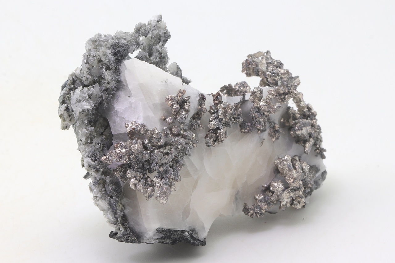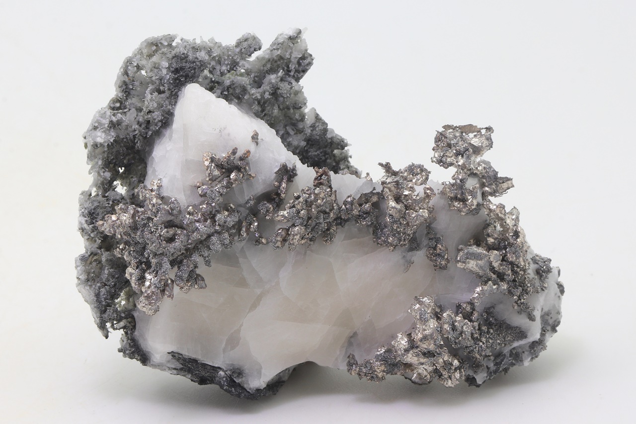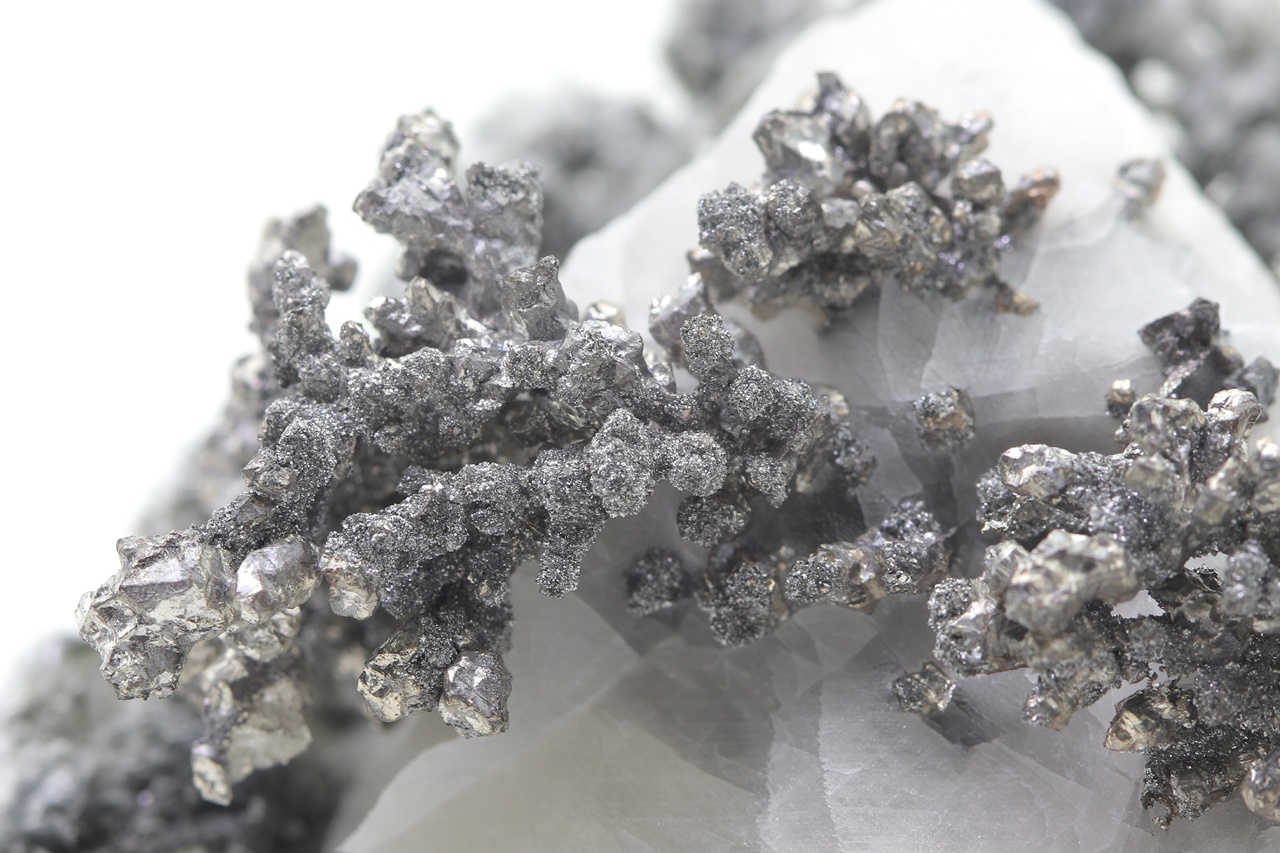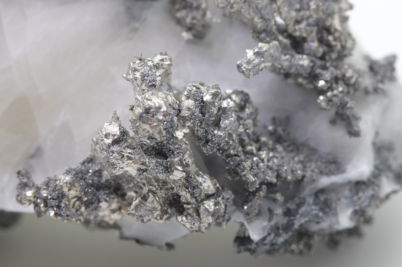 Wunderschönes Exemplar von reinem Silber, in dendritischen Formen wachsend mit einzelnen Kristallen bis zu 3 mm aus weißem Kalkstein herausragend.