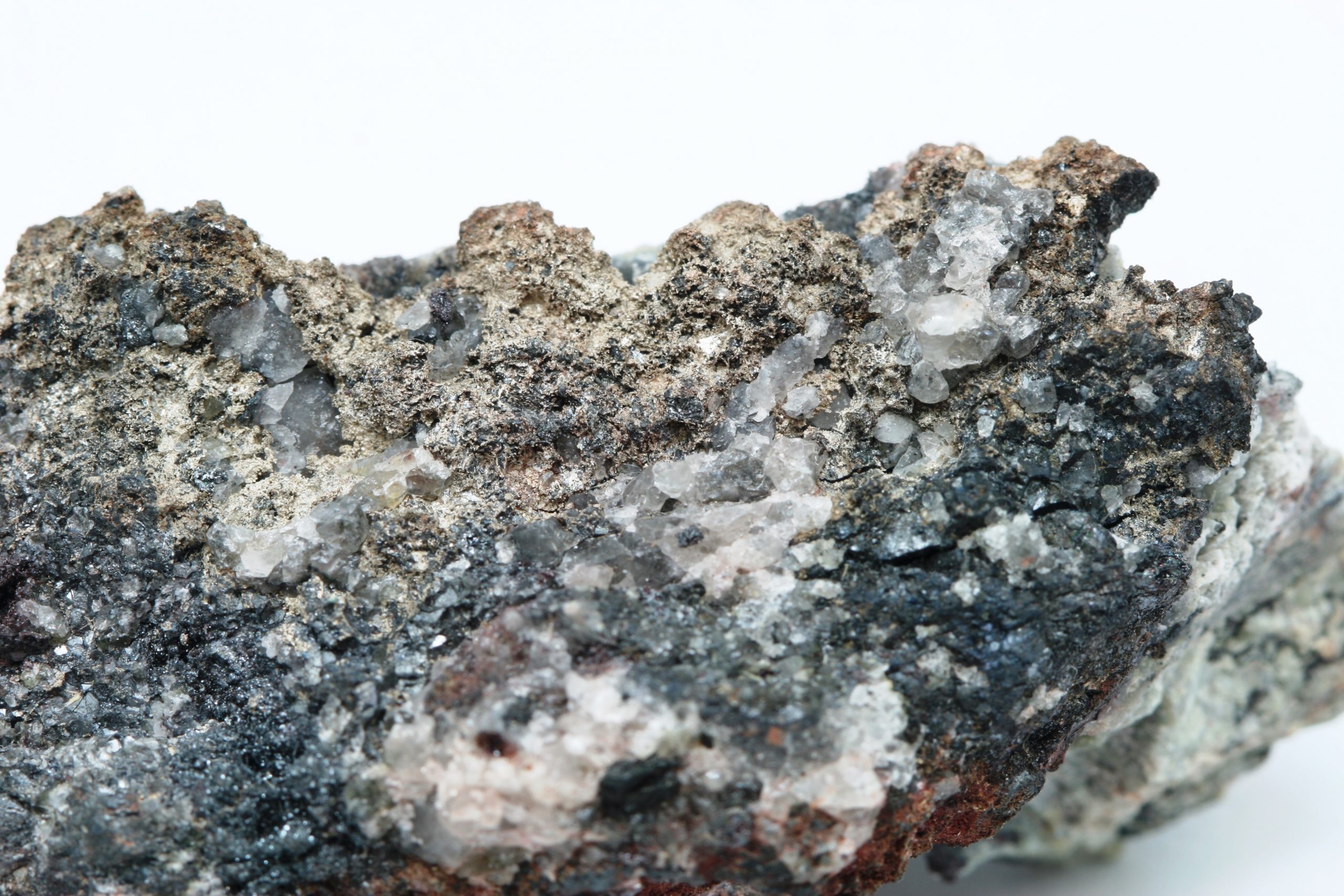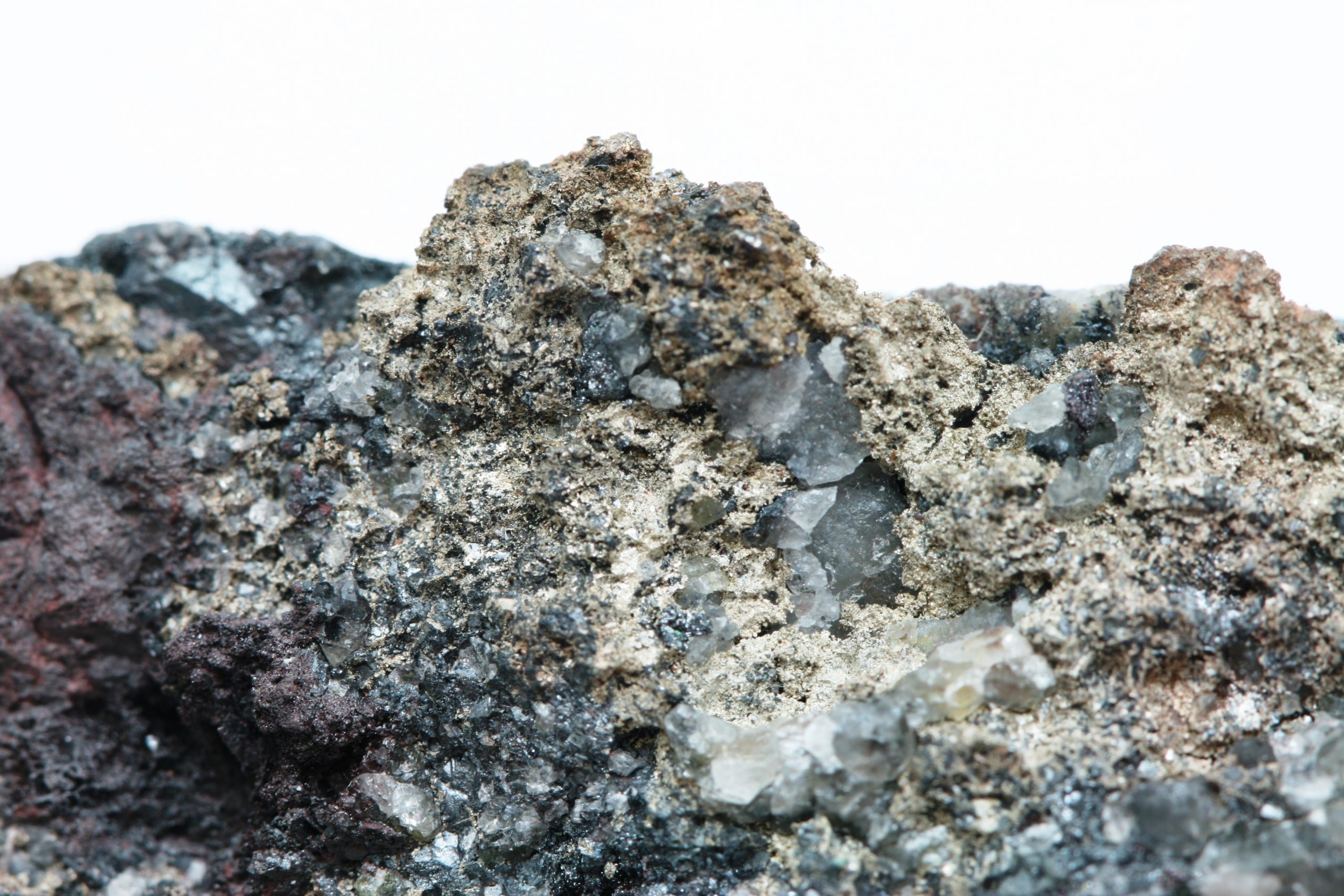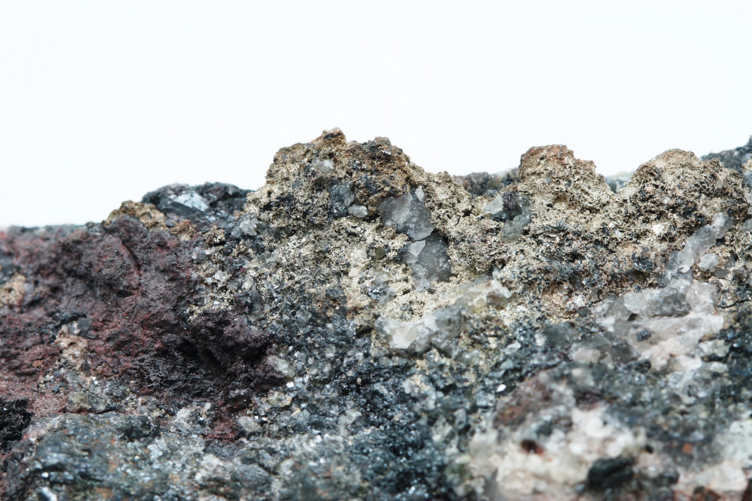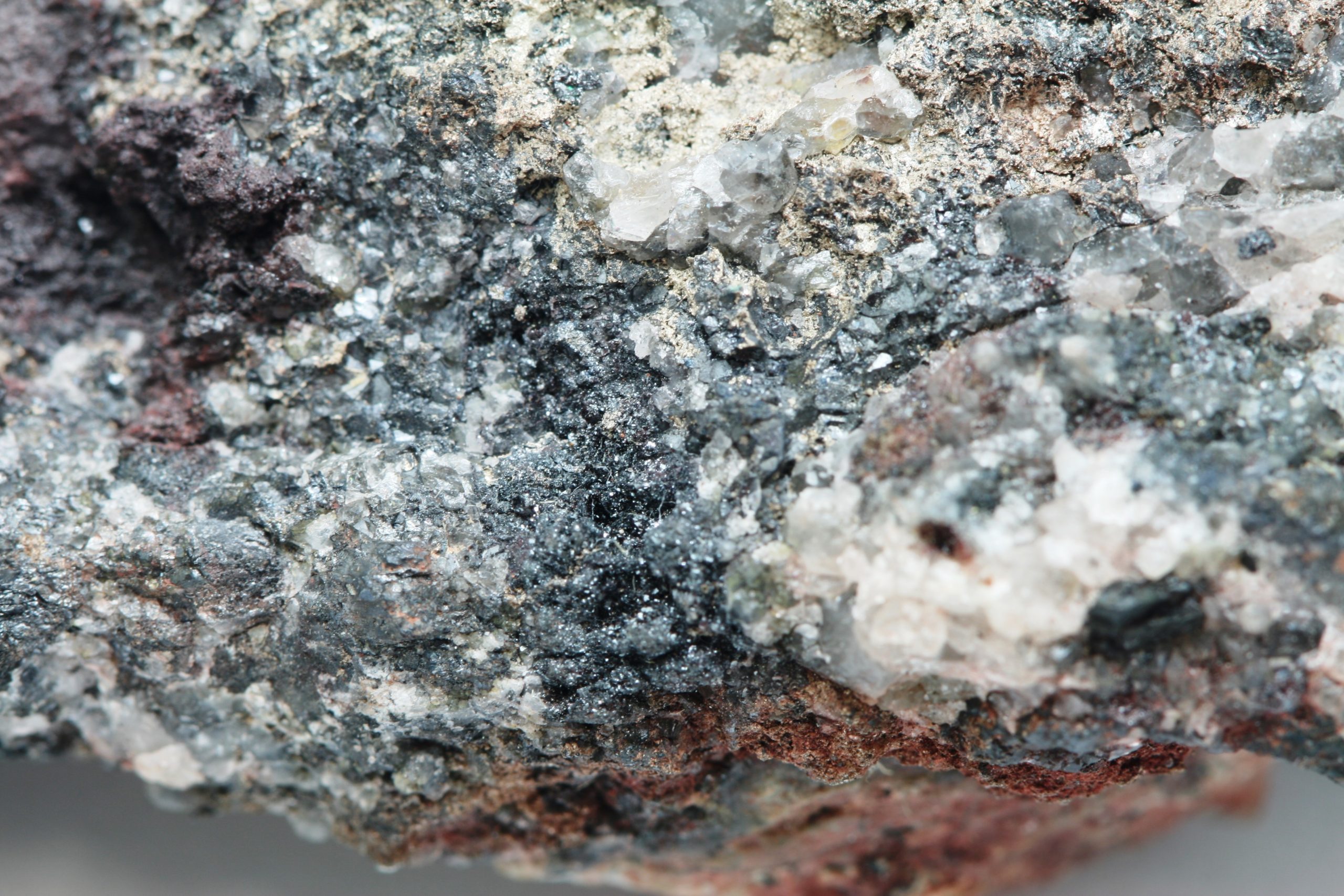 Assoziation von Silber mit Quarz, Hämatit und Stromeyerit (wahrscheinlich).