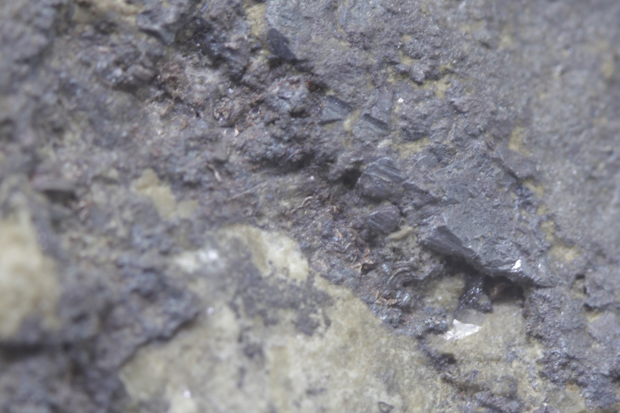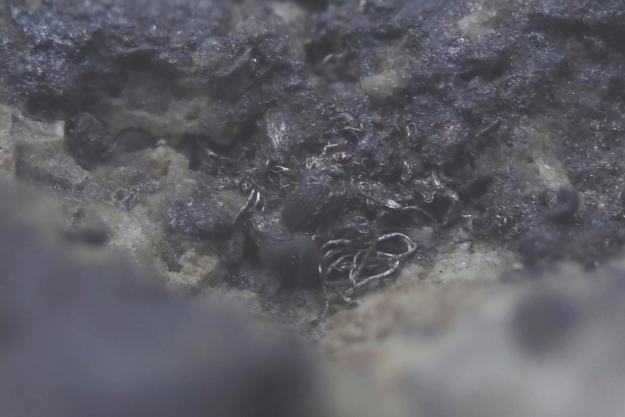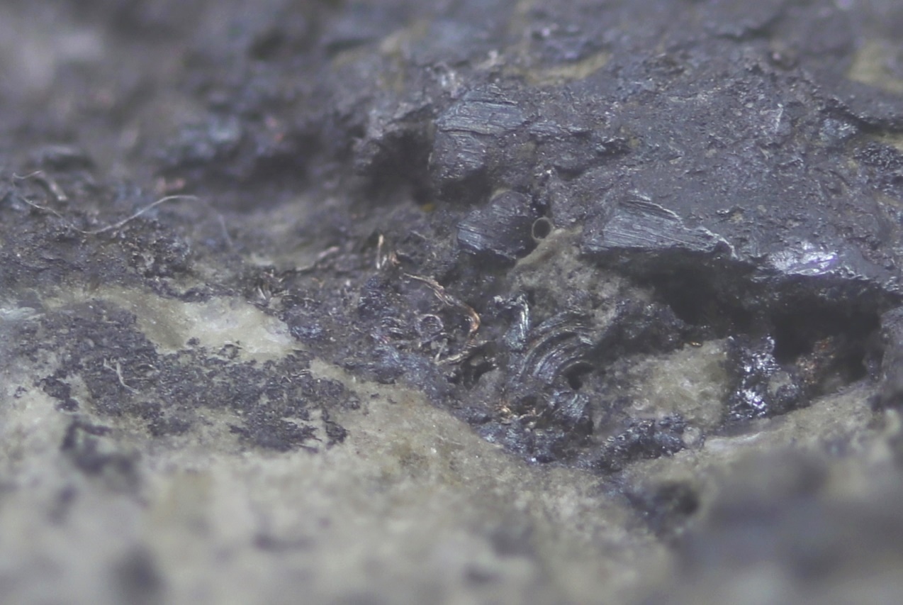 Ader aus dunkelgrauem Argentit mit eingewachsenen Silberdrähten.