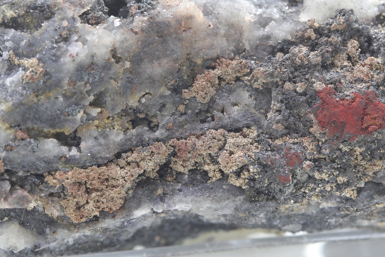 Reiche strauchige Aggregate von Silber durchsetzt mit schwarzem Stromeyerit. Die Probe stammt aus der Pošepny Ader.