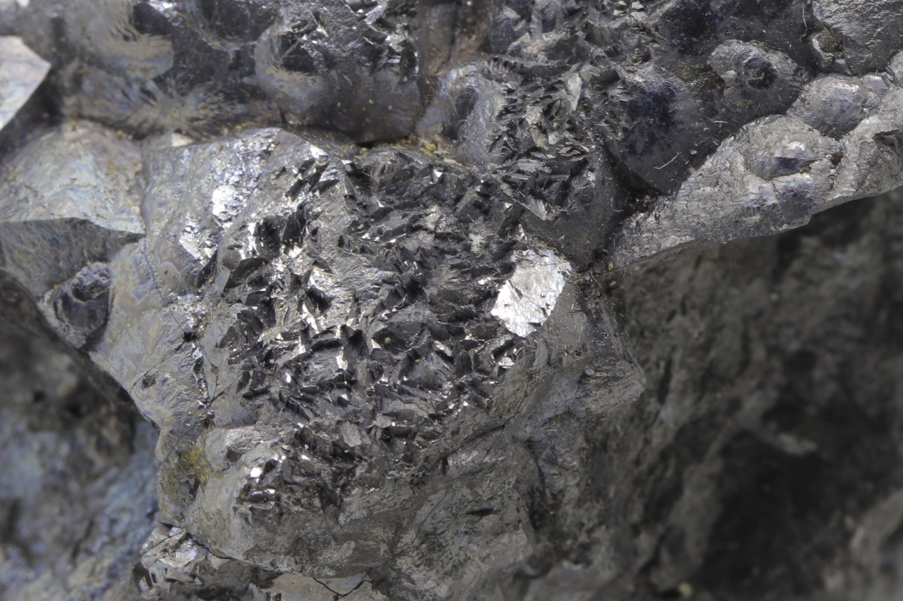 „Probe mit hochglänzenden, ‚geschmolzenen‘ oktaedrischen Skutterudit-Kristallen, die in einer Höhle enden.“
