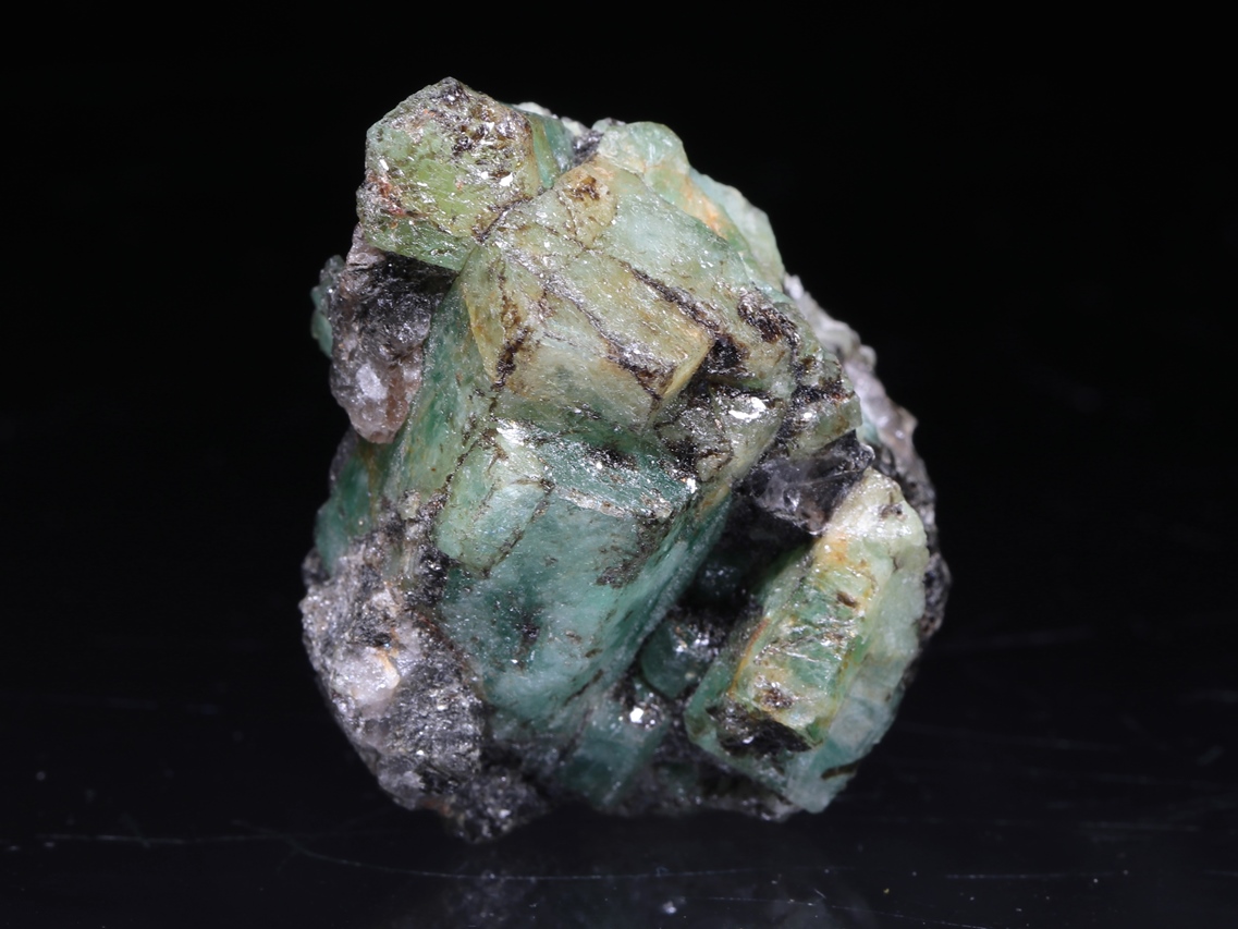 Ästhetisches, sättigendes Muster von Malyševský Smaragden mit slopečkovitými Kristallen bis zu 2,2 cm Länge.