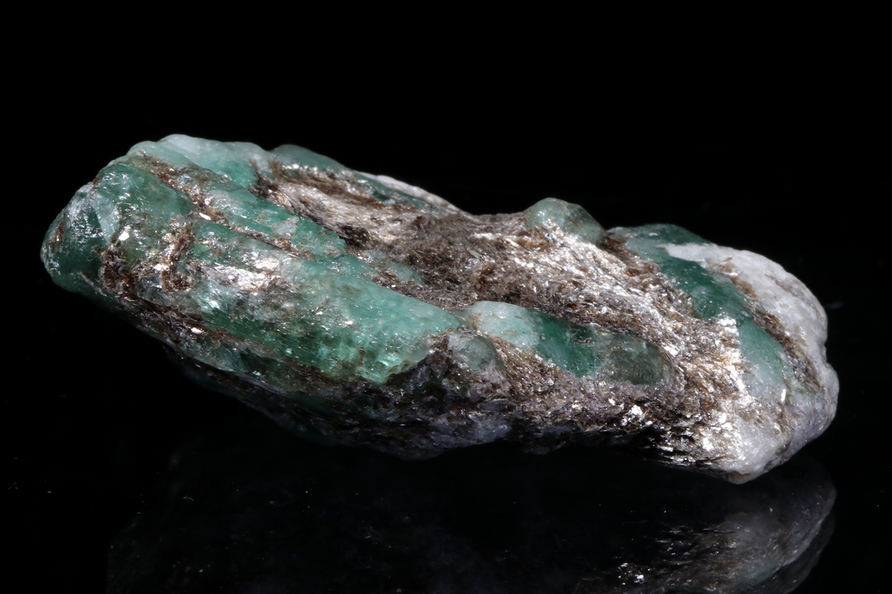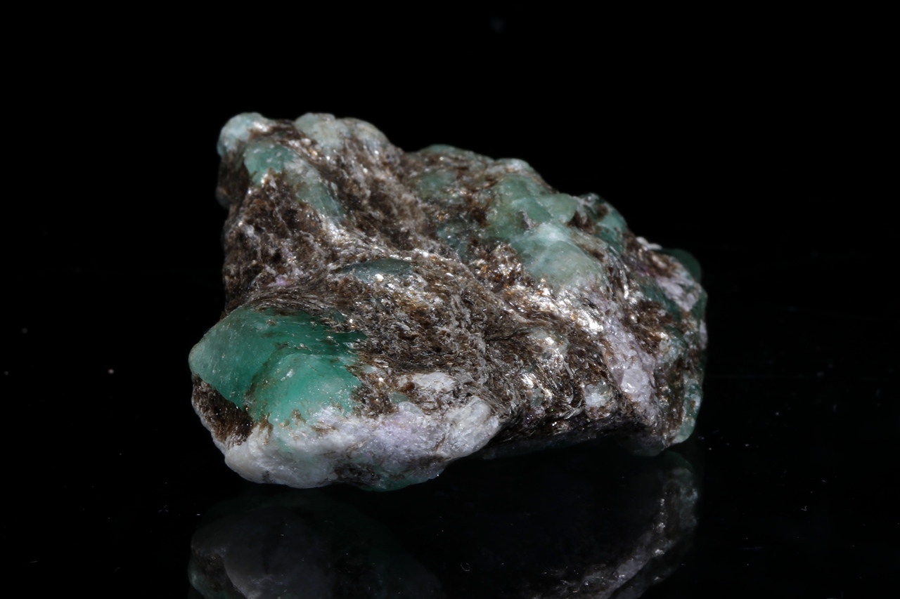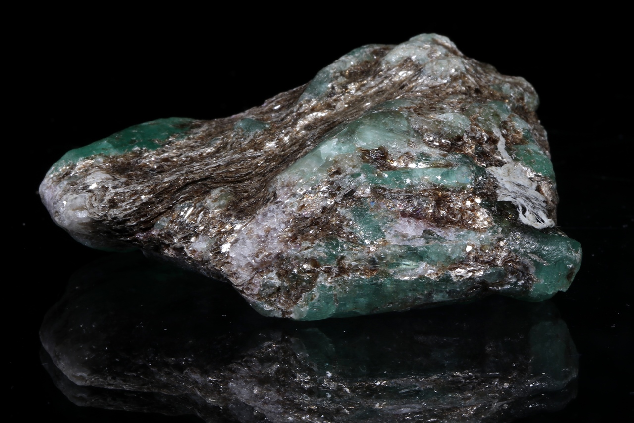Ästhetisch ansprechendes sättigendes Muster von Malyševské Smaragden mit einer großen Menge an Glimmer.