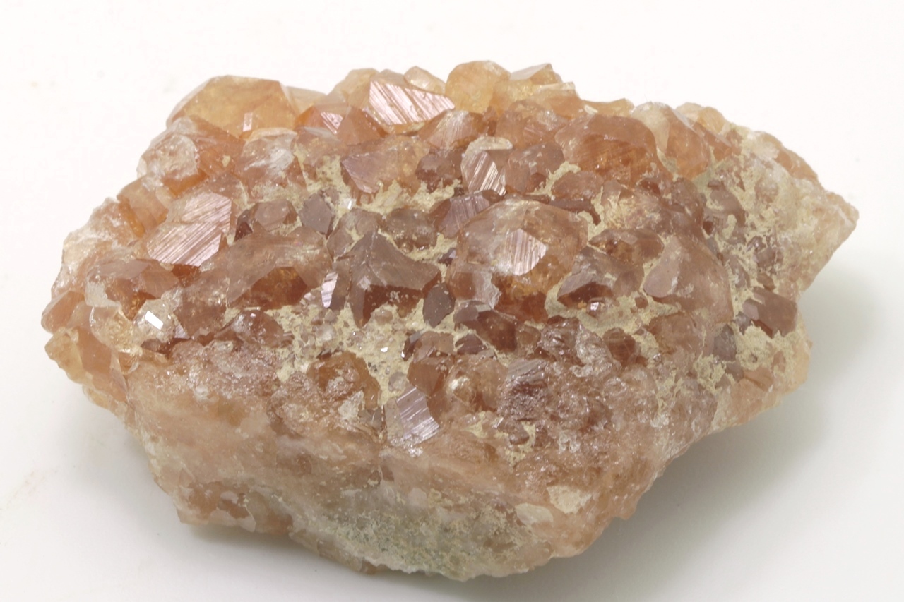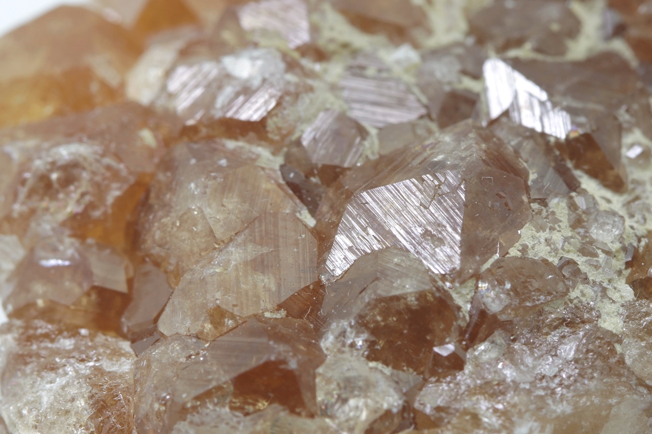 Druse herrlicher orangefarbener Spessartinit-Kristalle in Edelsteinqualität. Der größte Kristall ist 9 mm groß.
