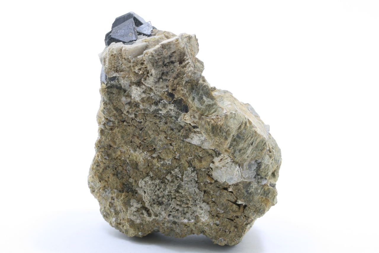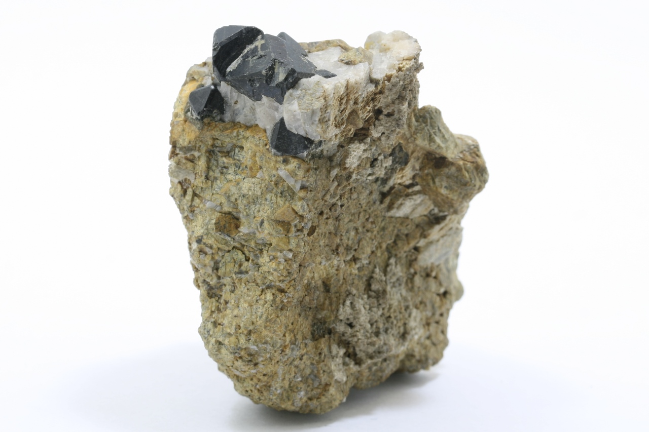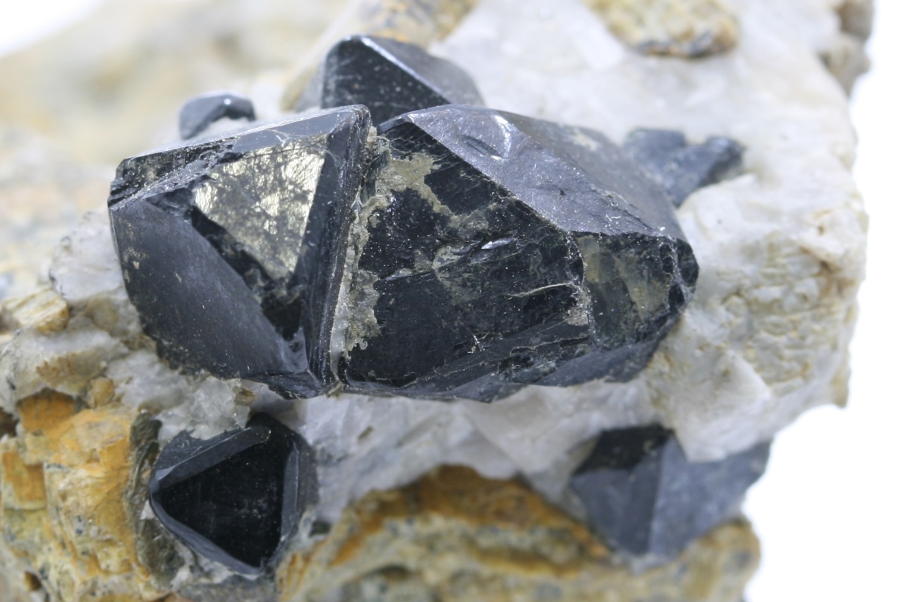 Schwarze Spinell-Kristalle, von denen der größte 10 mm groß ist.