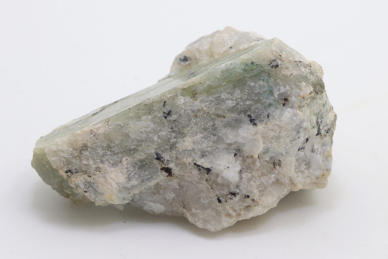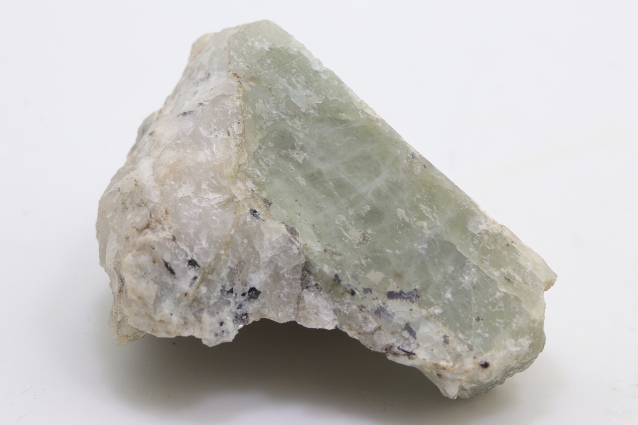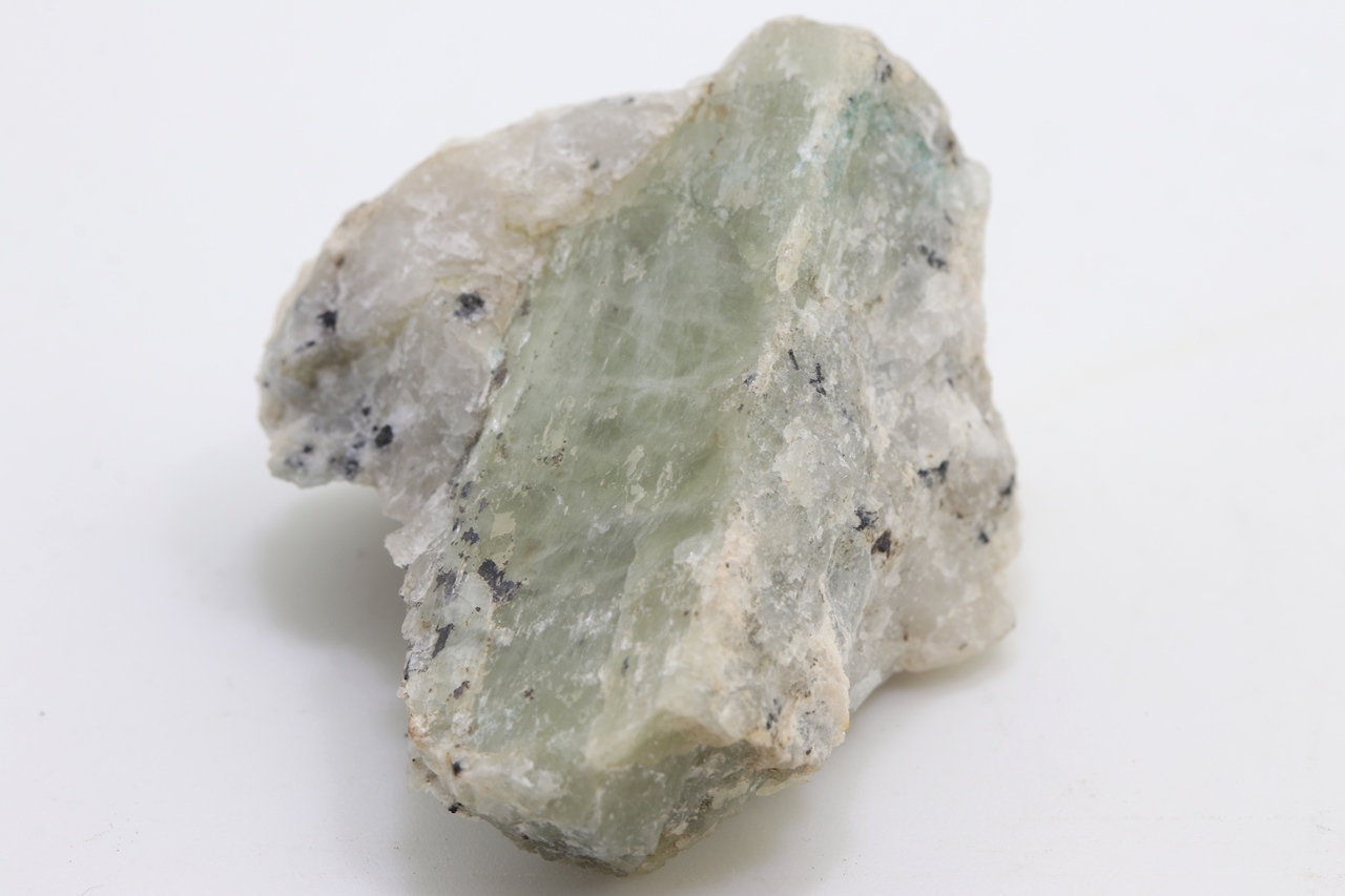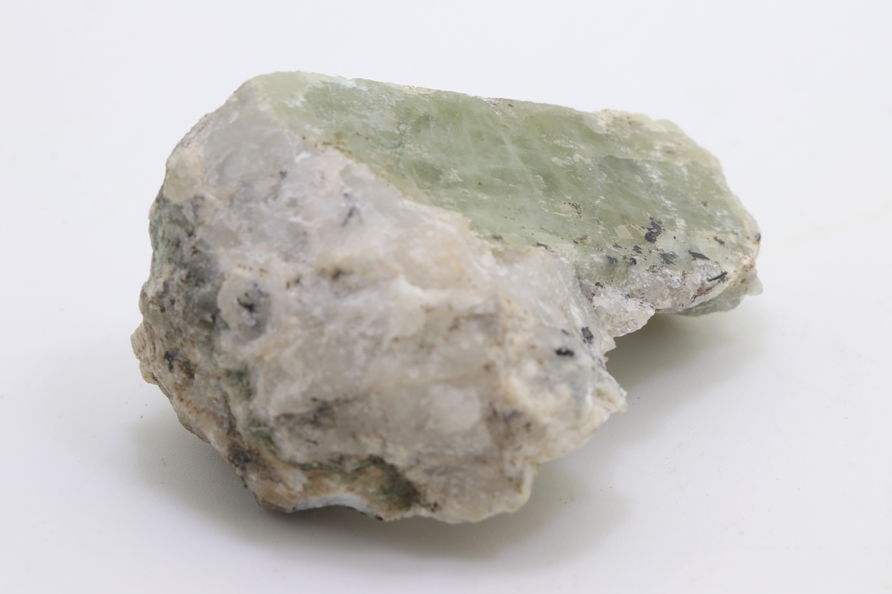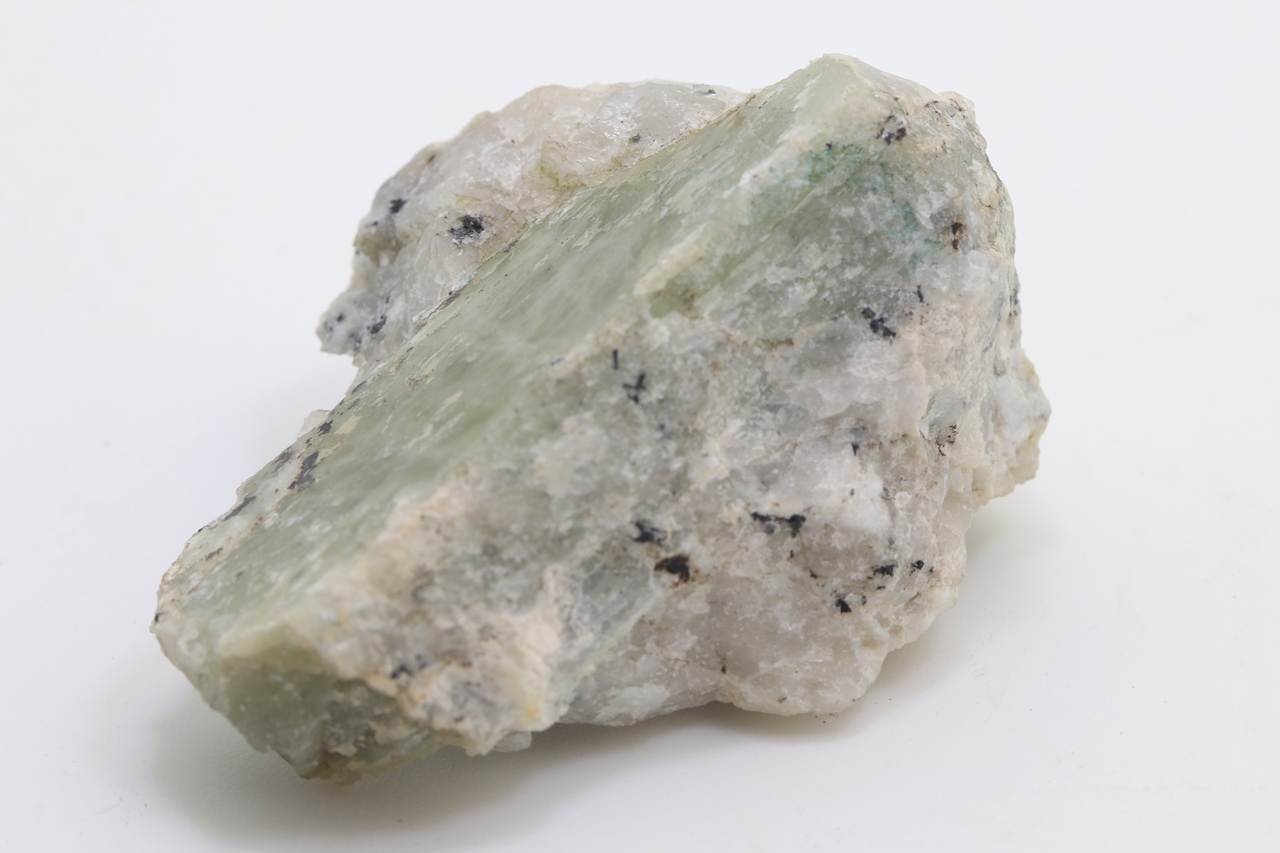 Grüner Spodumen aus Namibia erreicht eine Länge von 52 mm und eine Breite von 20 mm.