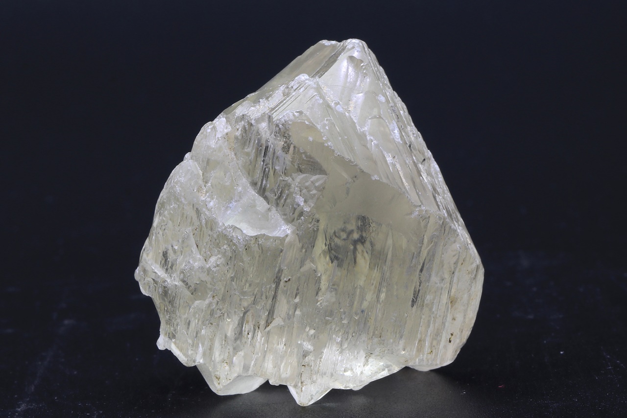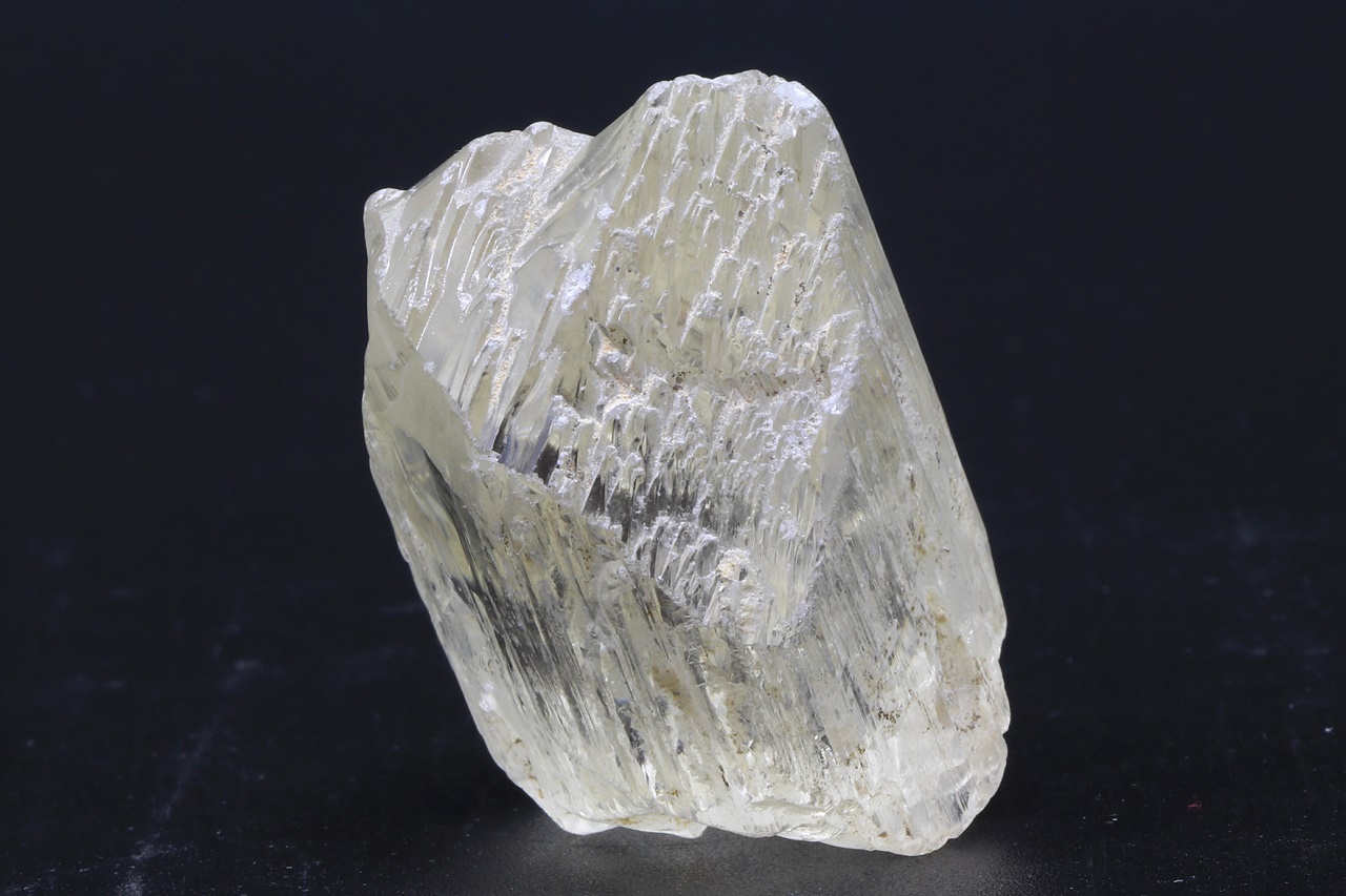 Wunderschöner, hellgelber Kristall des edelsteinqualitätigen Pyroxens. Der Kristall ist allseitig abgeschlossen .