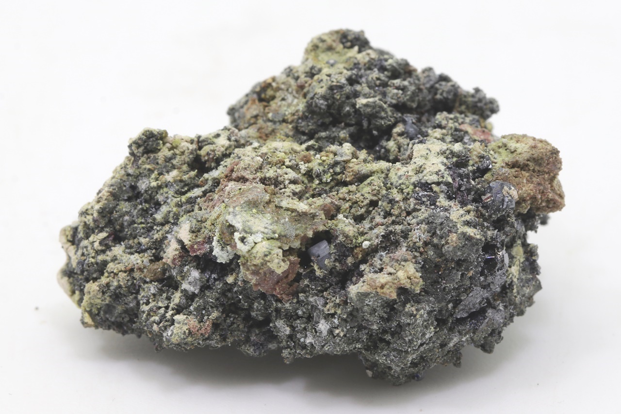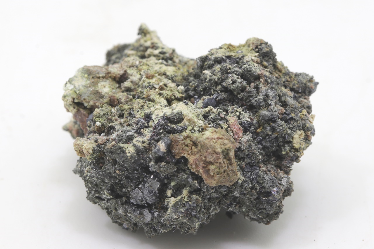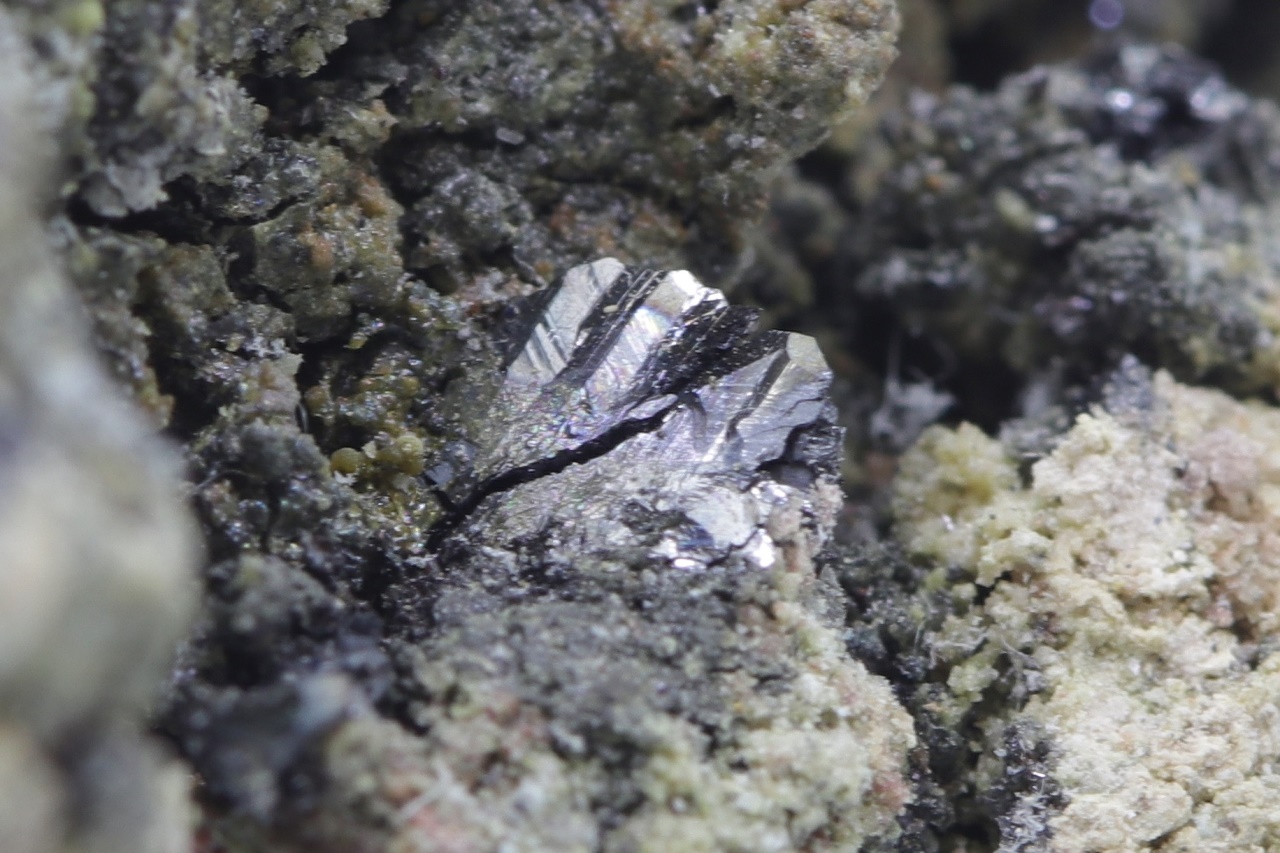 Stufe bestreut mit mehreren Stefanit-Kristallen, der größte davon ist 5 mm groß.