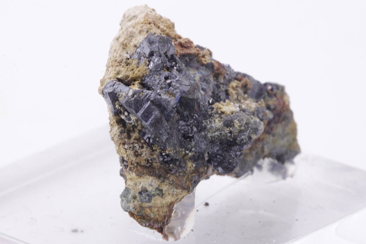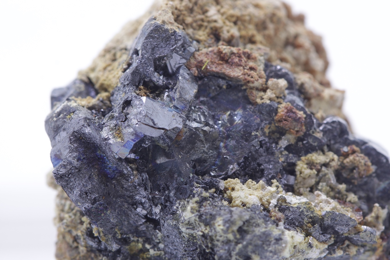 Reiche Stufe von metallisch glänzenden schwarzen Stefanit-Kristallen. Der größte Kristall (im linken Teil der Stufe) ist 9 mm groß.