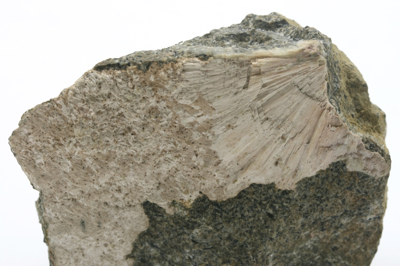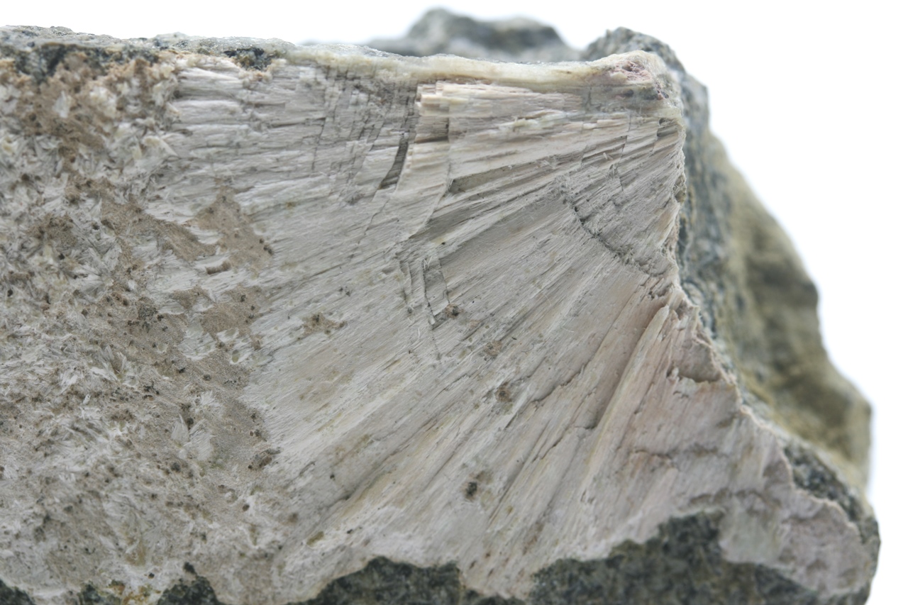 Radiální Aggregat des beige Minerals aus der Smectit-Gruppe.