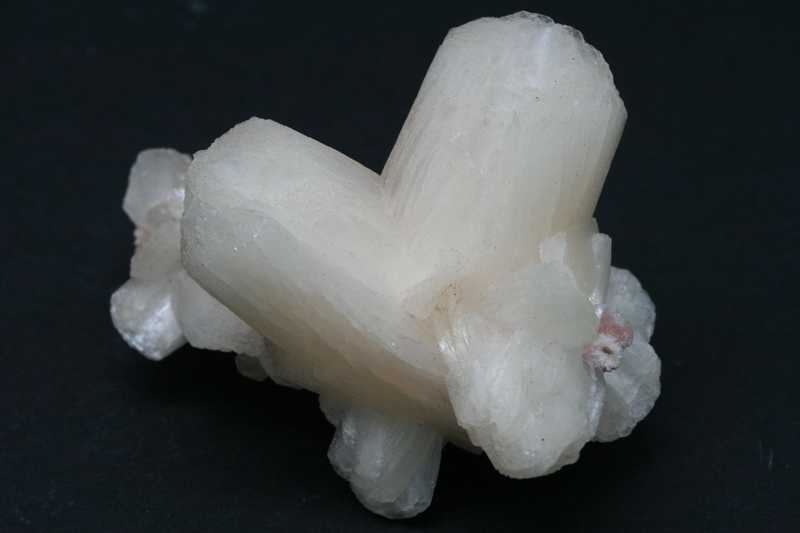 Kristalle von Stilbit, die auf einem dünnen Stalaktiten gewachsen sind. Der größgrößte Kristall des Stilbit hat eine Größe von 5,5 cm .