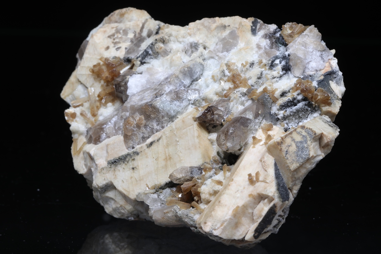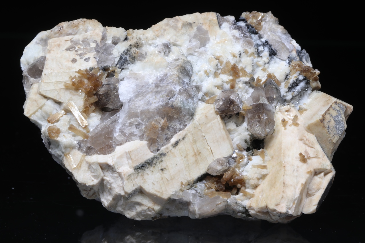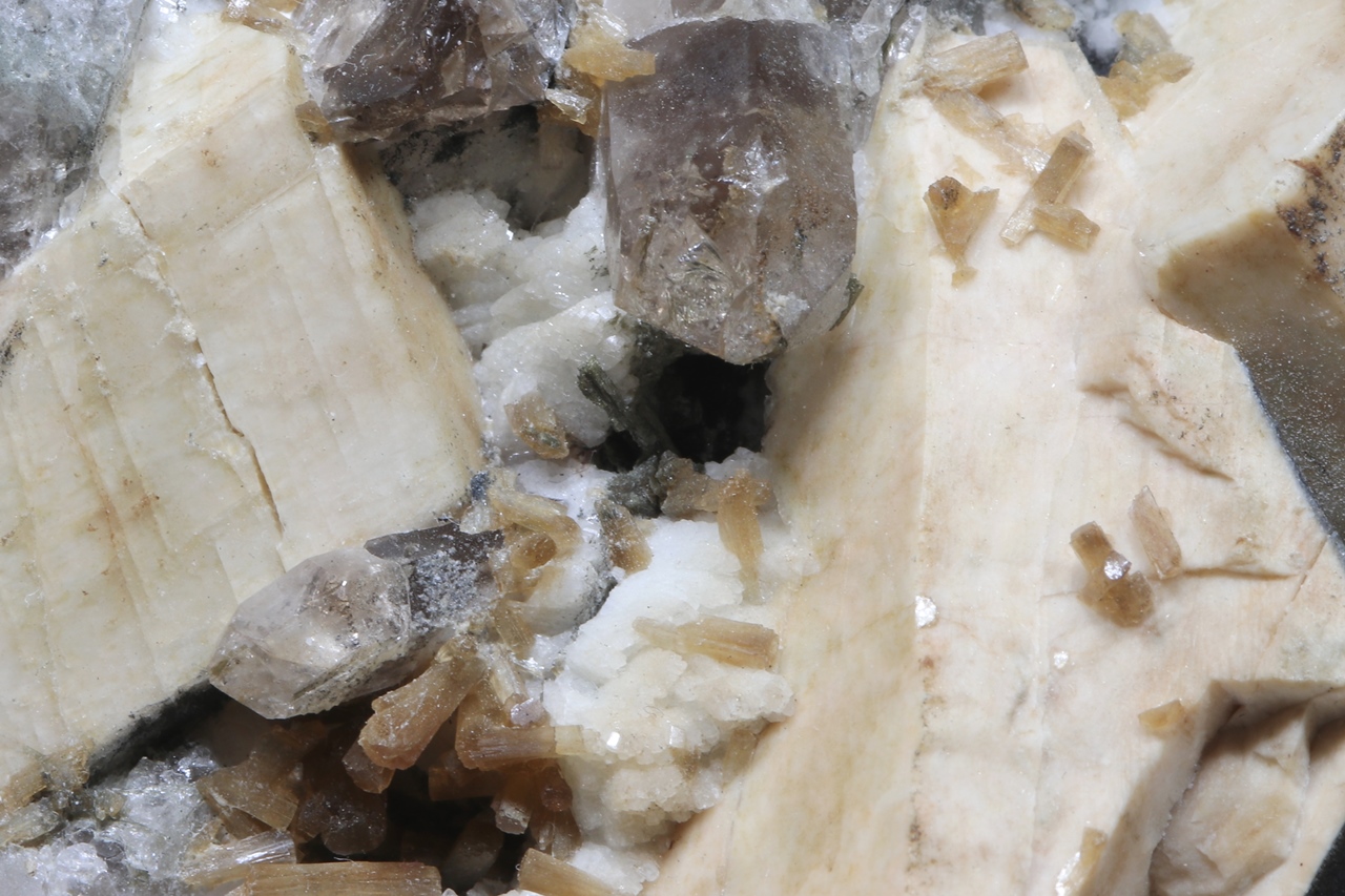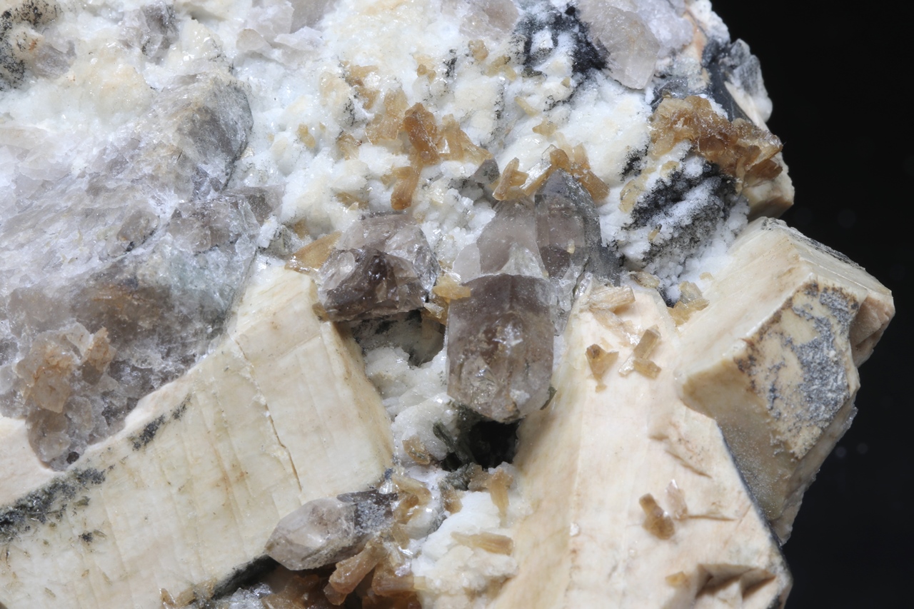 Stilbit, Orthoklas, Goethit
