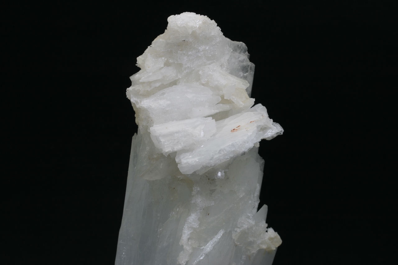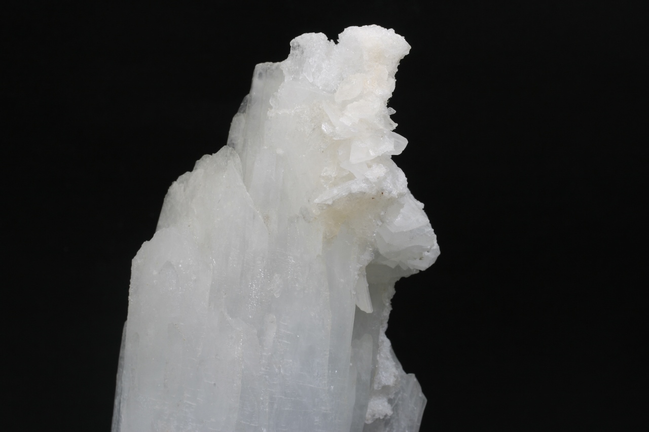 Fächerförmiger, stark plattiger, weißer Kristall von Strontiumsulfat.