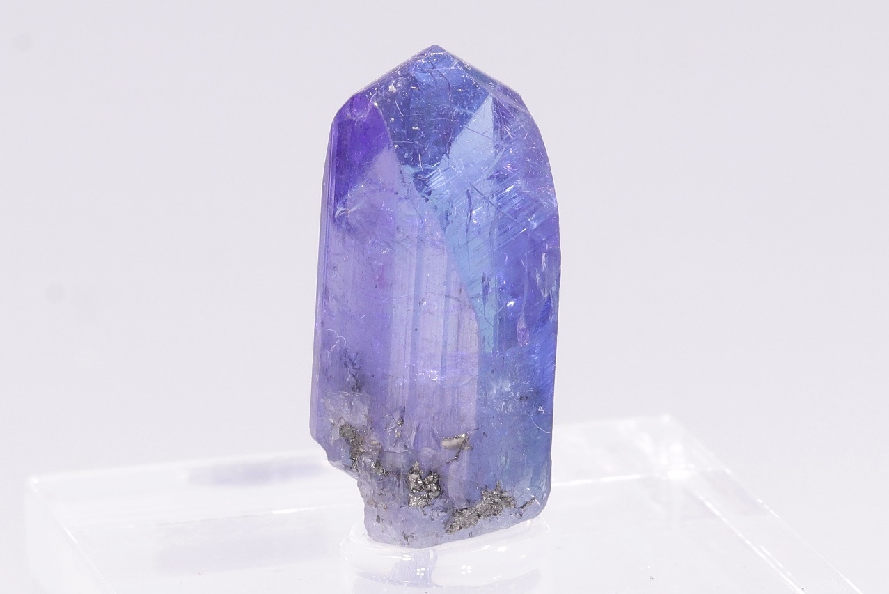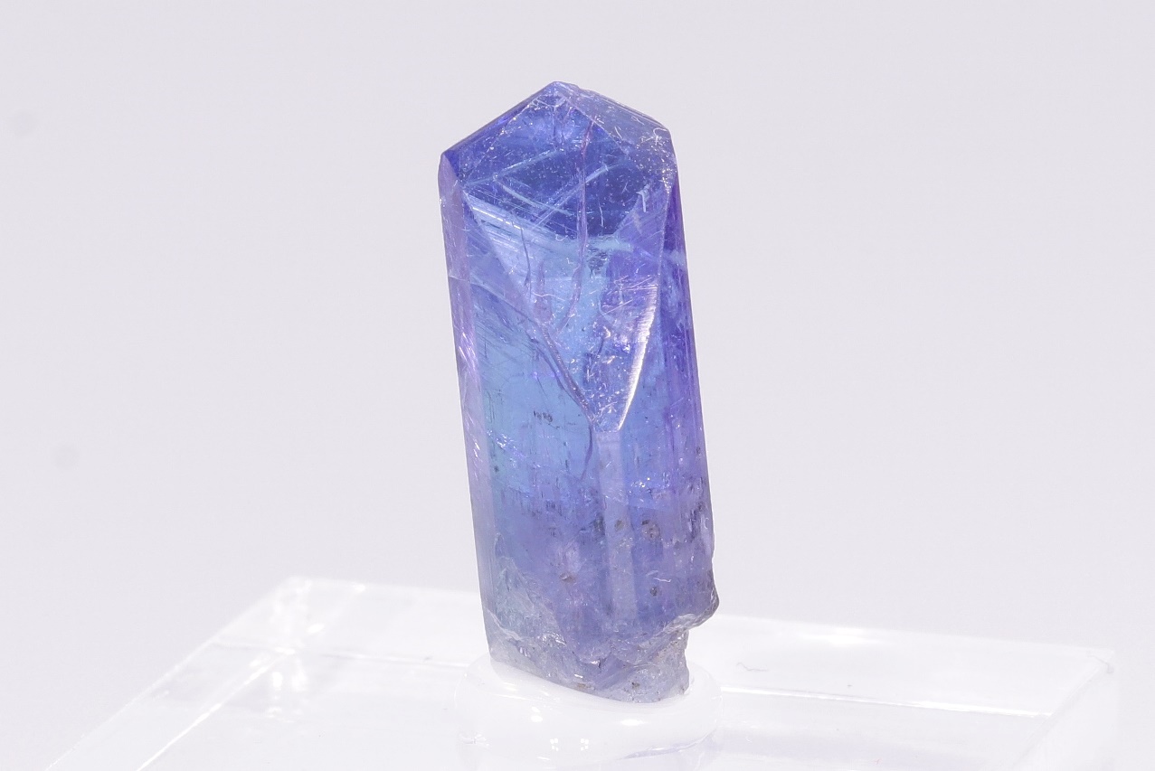 Ein wunderschönes Exemplar eines hochglänzenden, gut definierten Tanzanitkristalls mit einem Gewicht von 2,9 g. Dieser Schmuckqualität-Kristall zeichnet sich durch seinen auffallenden Farbwechsel von Blau zu Lila aus.