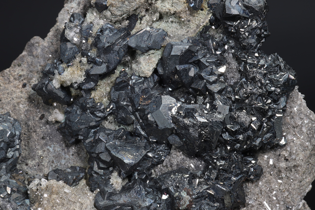 Reiche Druse von stahlgrauen Tennantit-Sulfidkristallen mit einer Größe von bis zu ca. 7 mm.