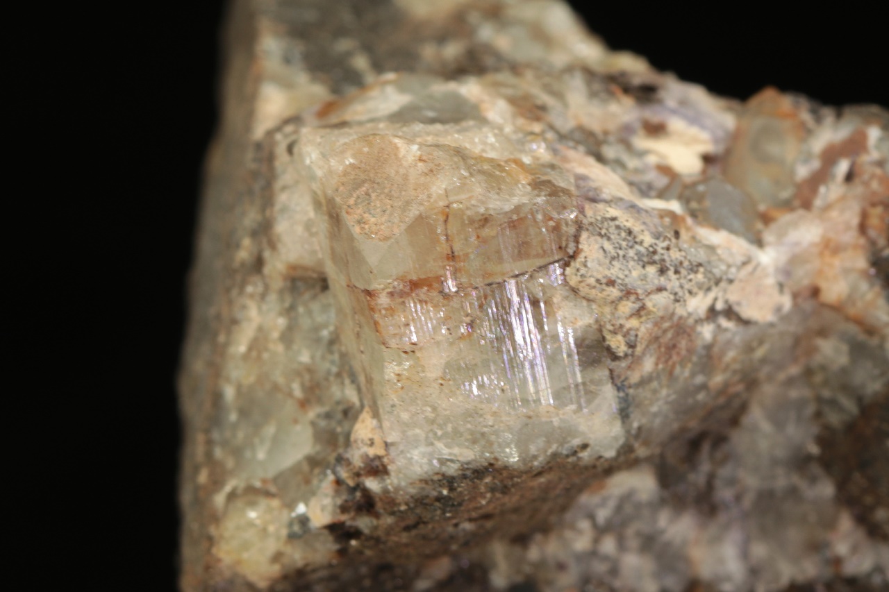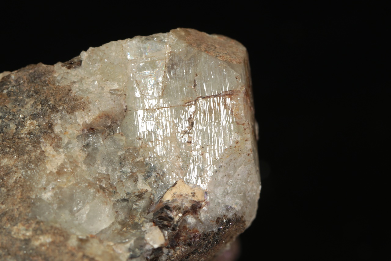Ungewöhnlich großer Topas-Kristall mit den Abmessungen 2 × 1,5 cm. Der Kristall endet in einem Prisma, ist jedoch an den Enden nicht abgeschlossen.
