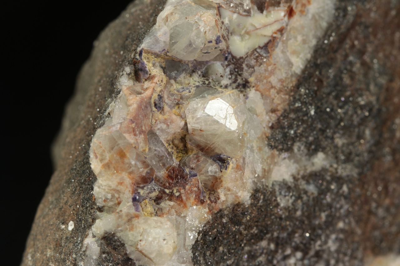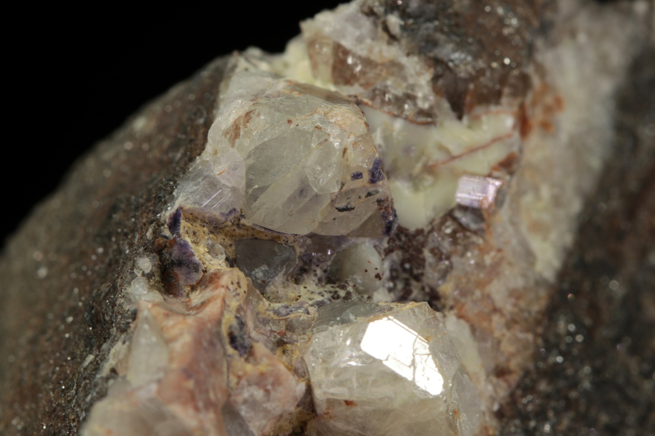 Kristalle des klaren Topas gewachsen in einer Höhle. Der größte Topas-Kristall ist 8 mm groß.