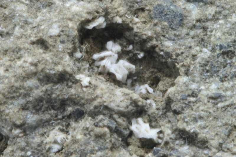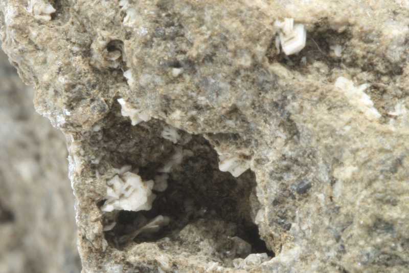 Kleine leistenförmige Kristalle in Hohlräumen.. Ein Polymorph von Quarz aus Okružná .