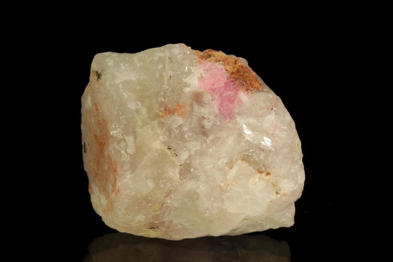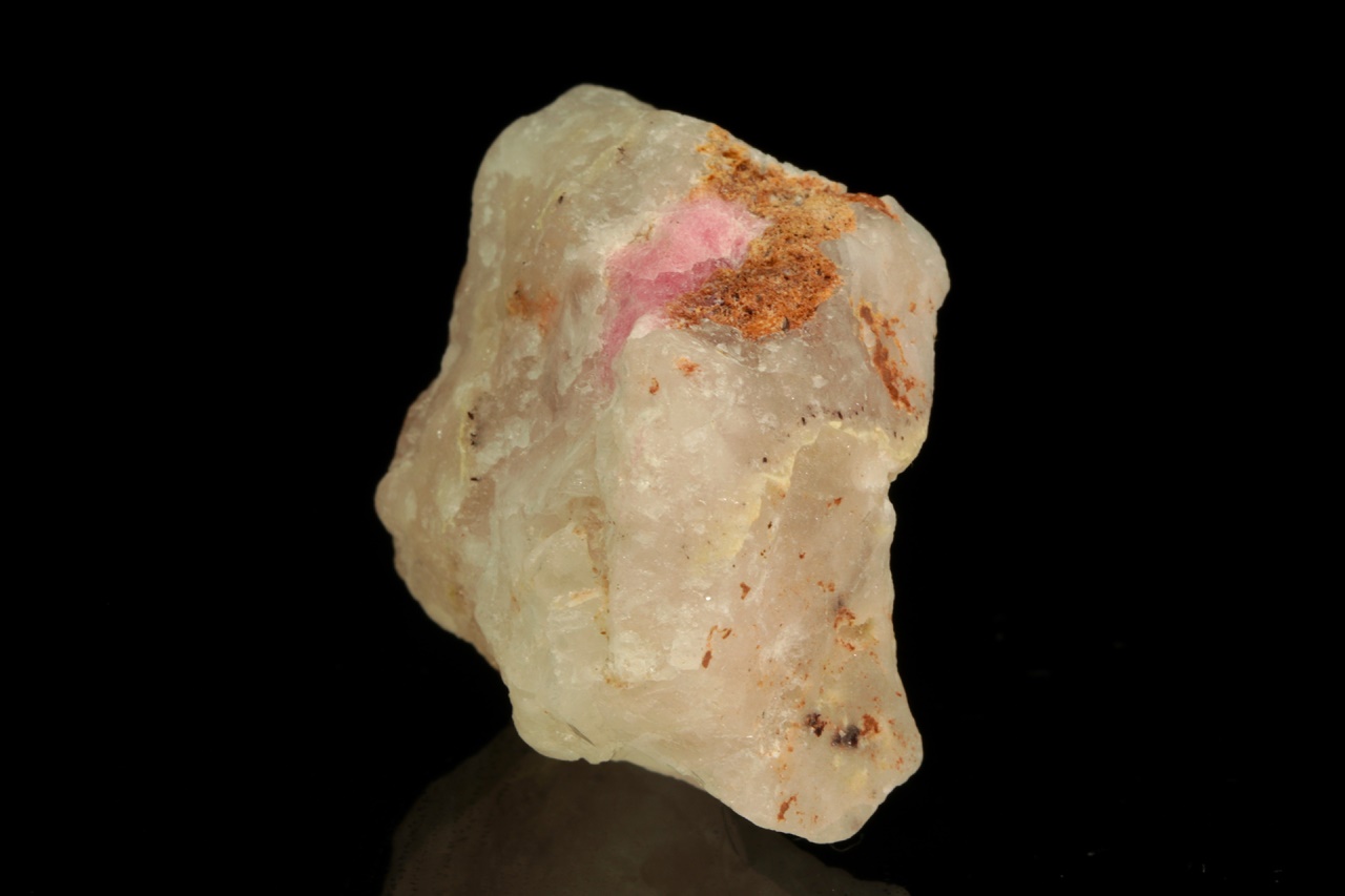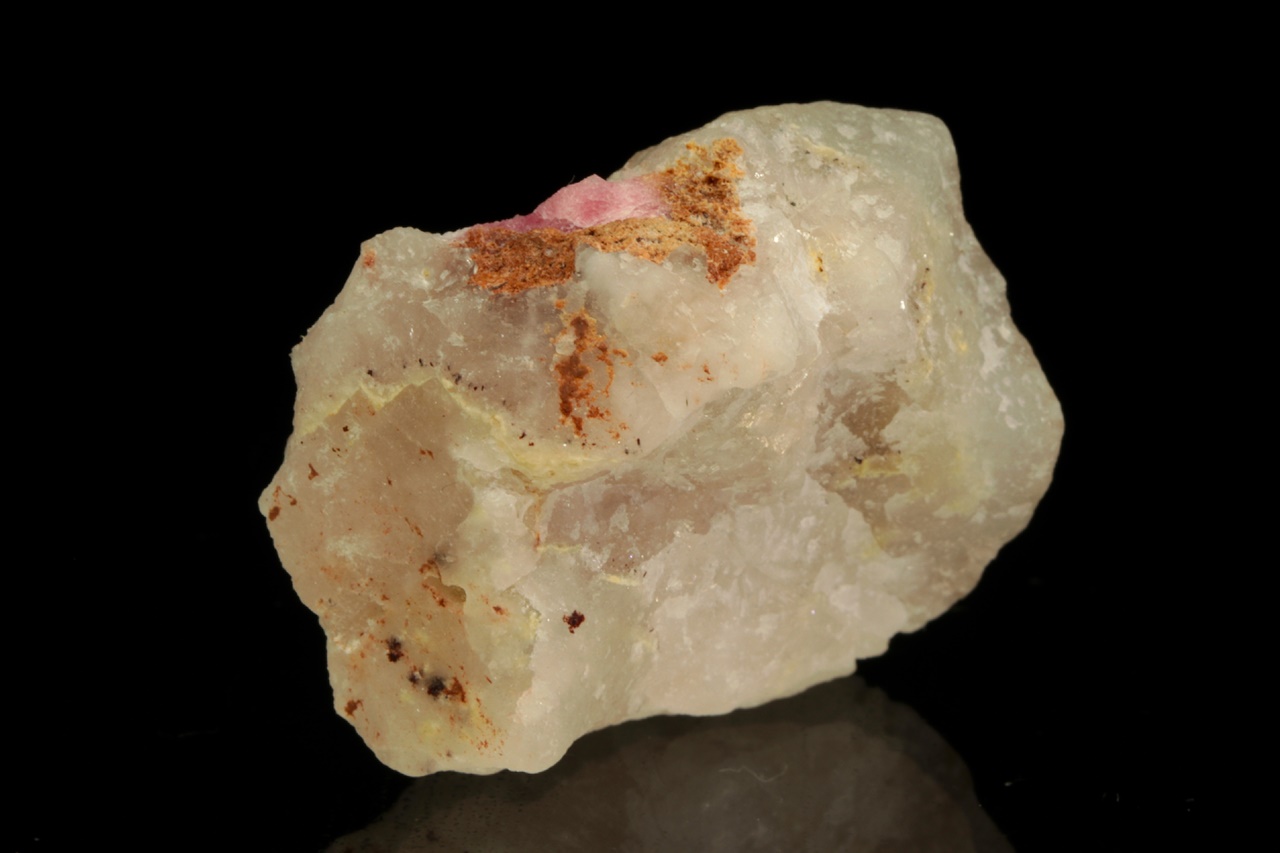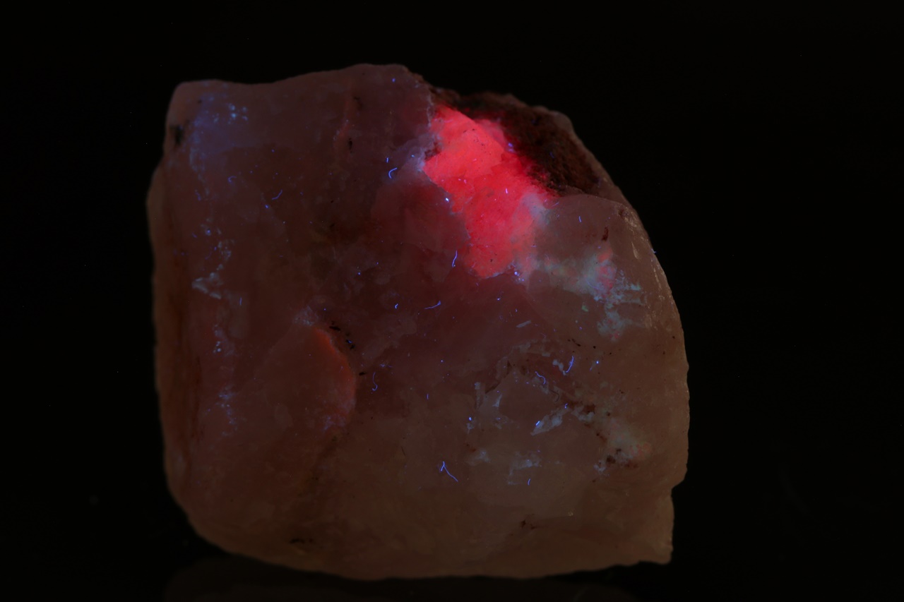 Vzácný silikát berylia – tugtupit se schopnosti tzv. tenebrescence (po nasvícení UV zářením změní barvu). Velikost zrna je 9 mm.