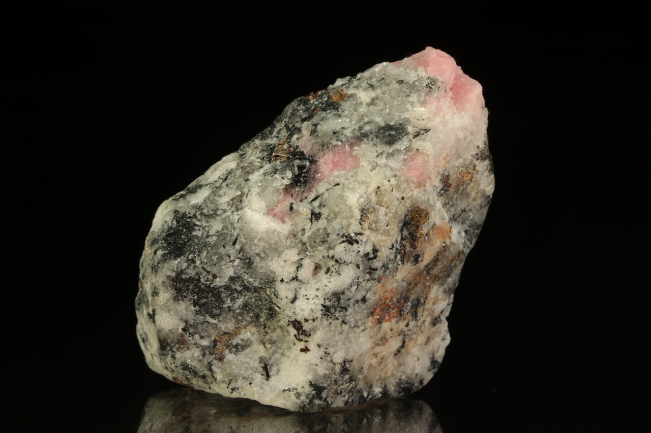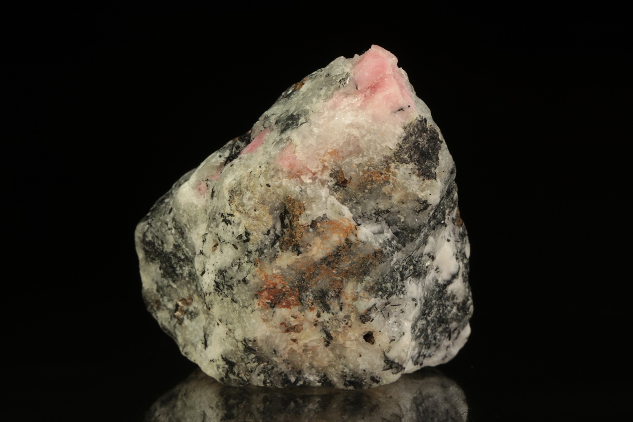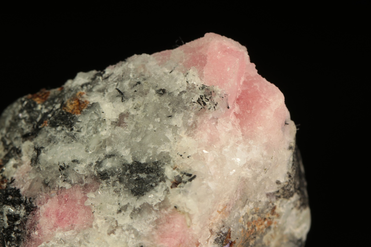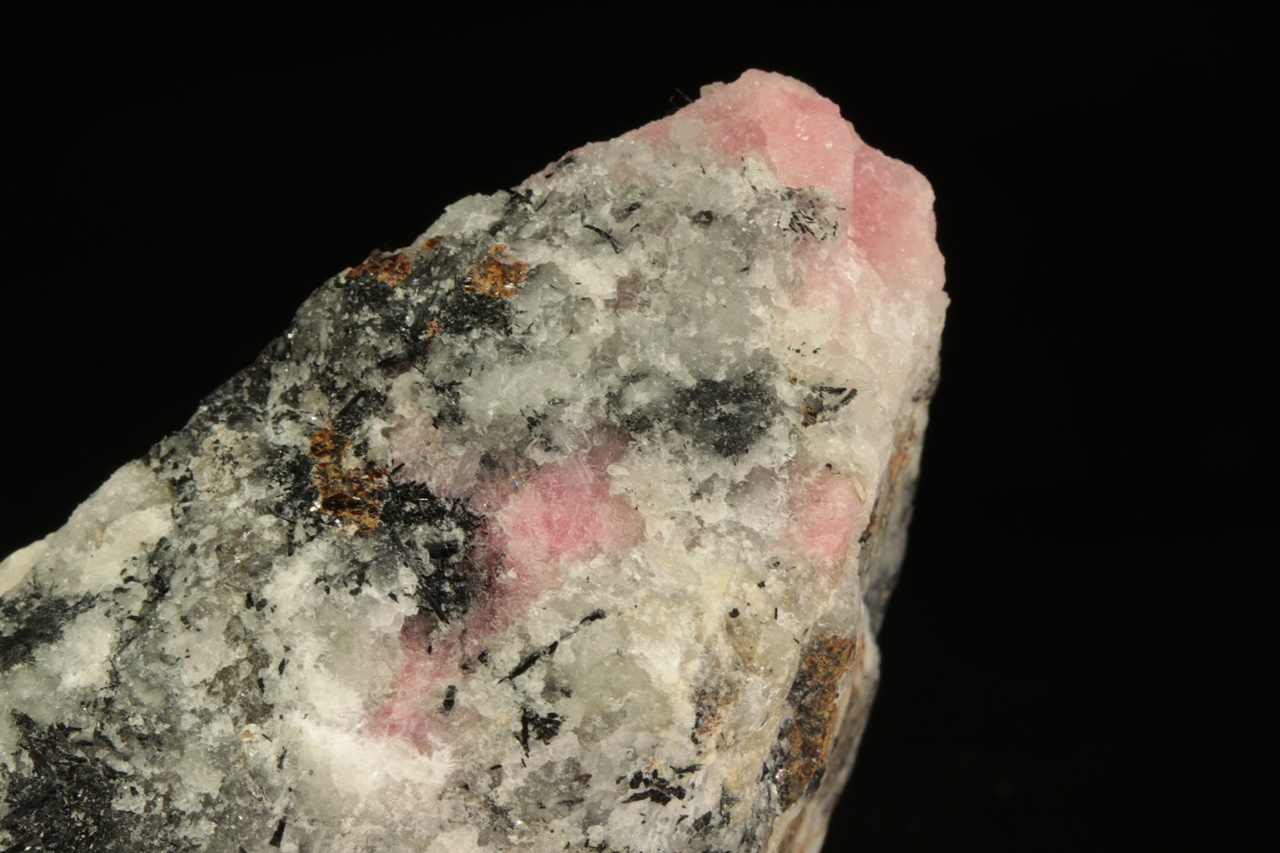 Vzorek vzácného růžového silikátu berylia – tugtupitu se schopnosti tzv. tenebrescence (po nasvícení UV zářením změní barvu). Velikost největšího zrna je 15 mm.