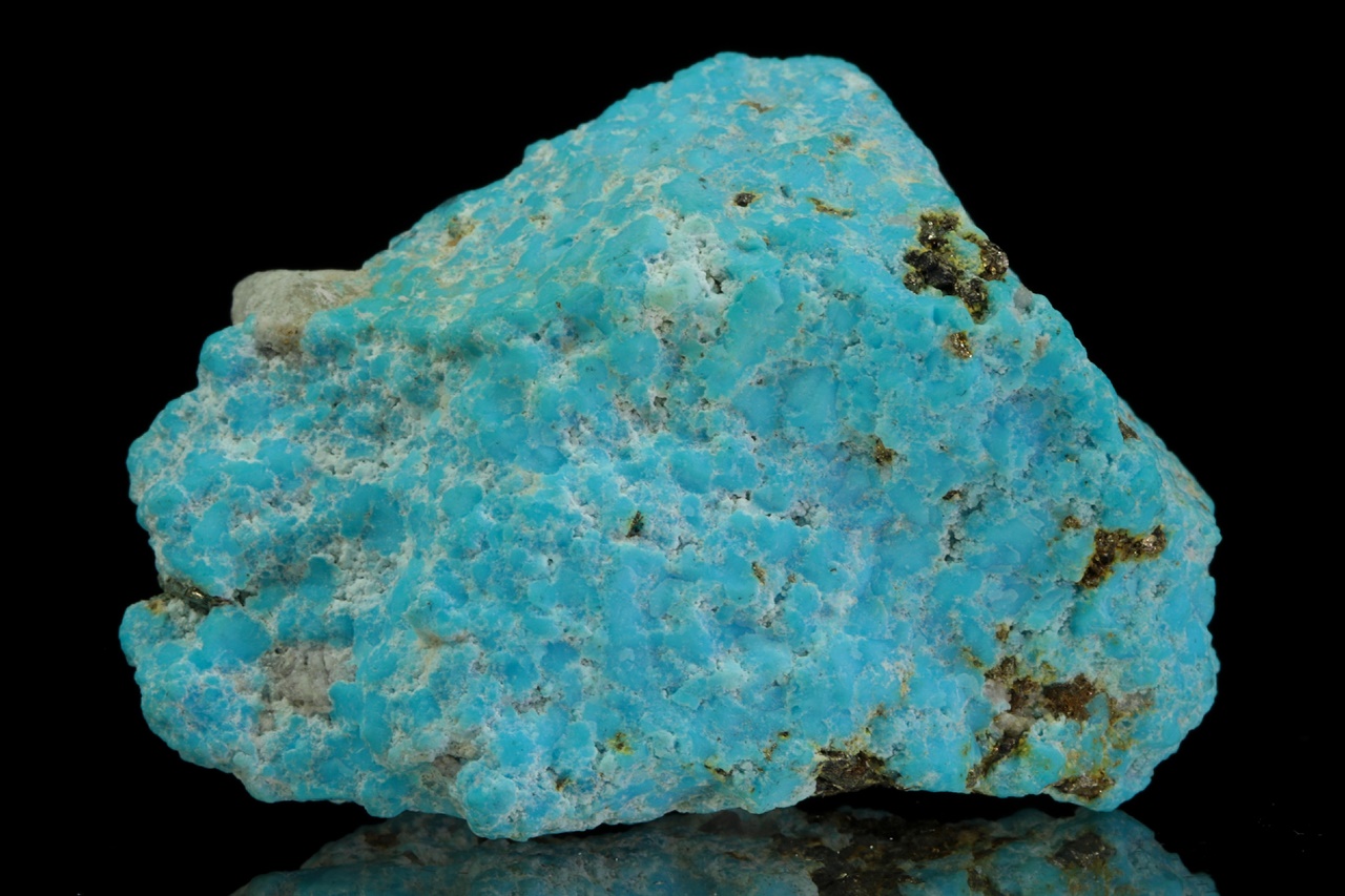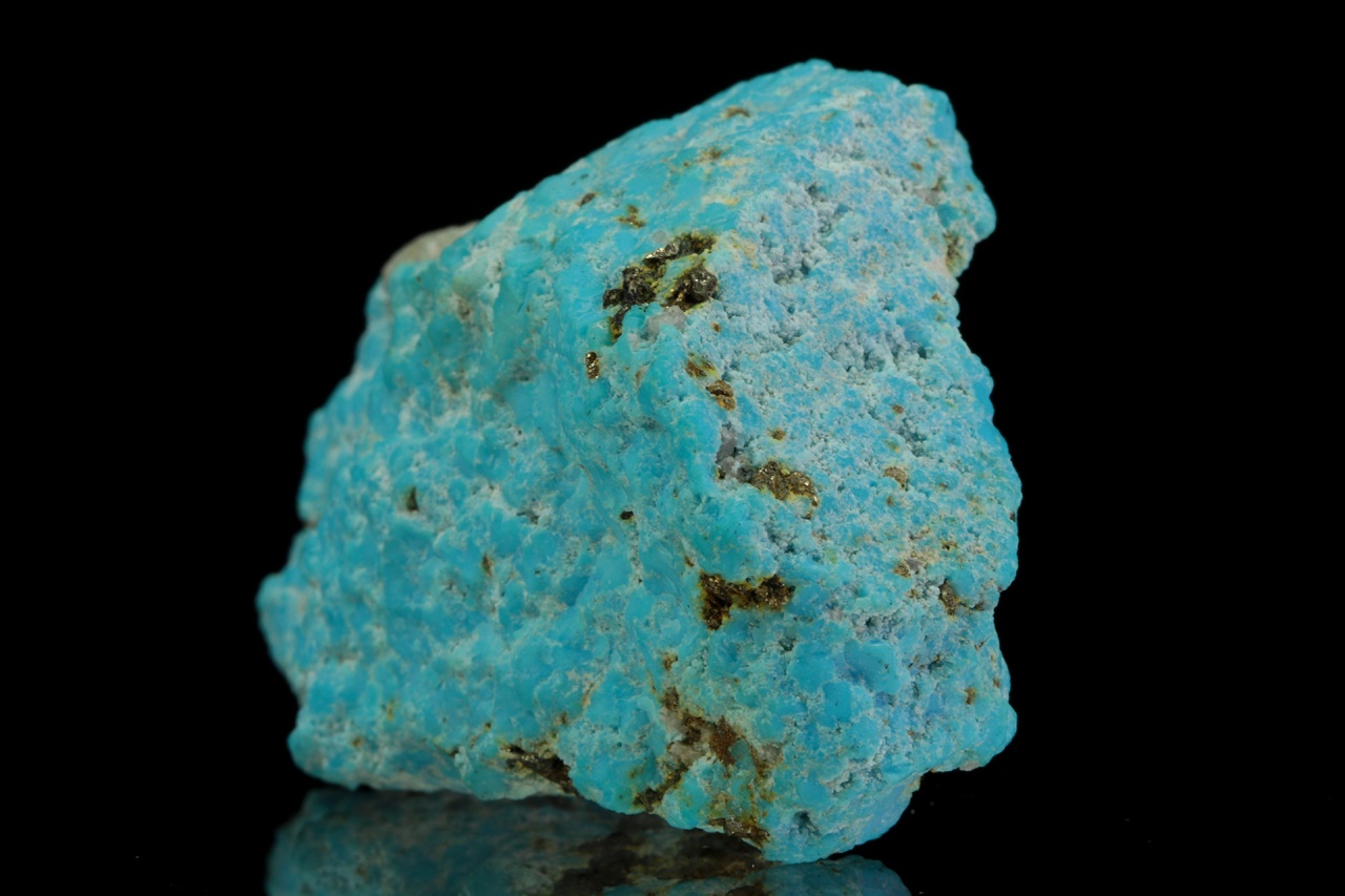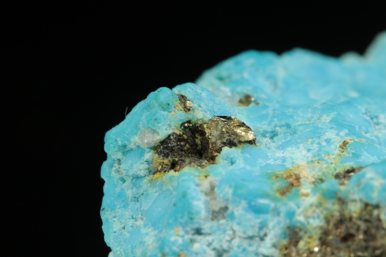 Wunderschön blauer Türkis mit goldenen, metallisch glänzenden Aggregaten von Pyrit aus einer iranischen Lokalität ist uns bereits seit 4000 Jahren bekannt.