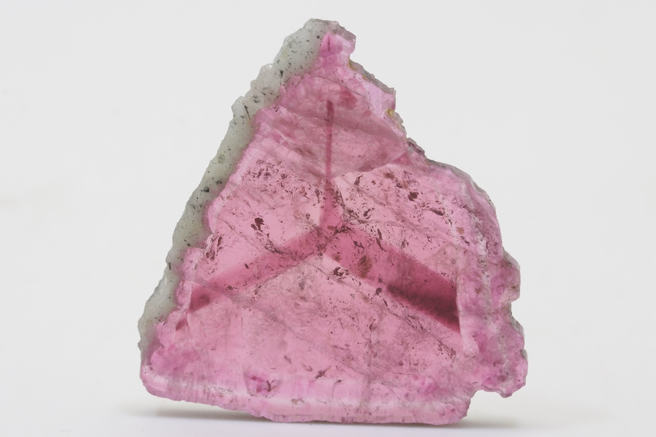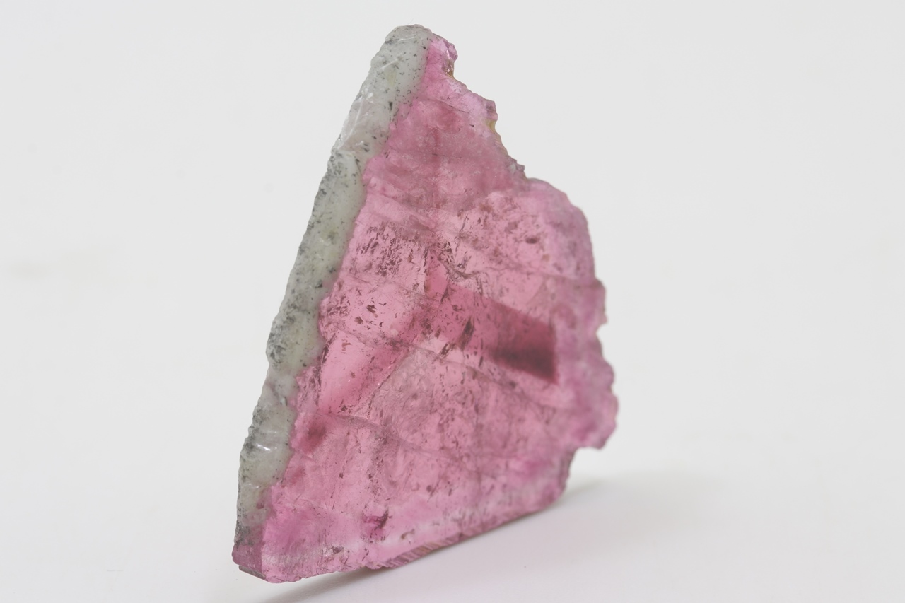 Tafel mit einem wunderschönen rosa Turmalin mit gut entwickelter Zonierung. Alle drei Seiten sind von Kristallflächen begrenzt und unbeschädigt.