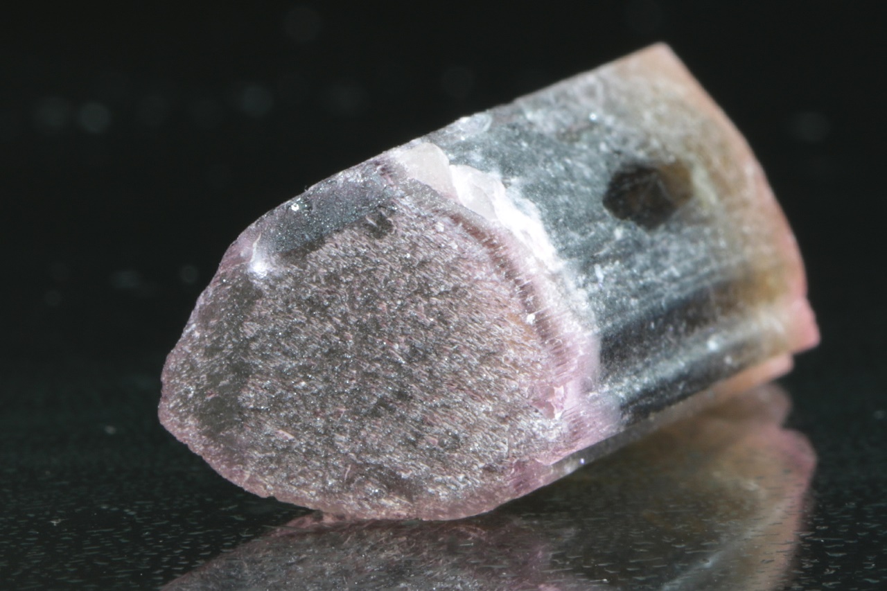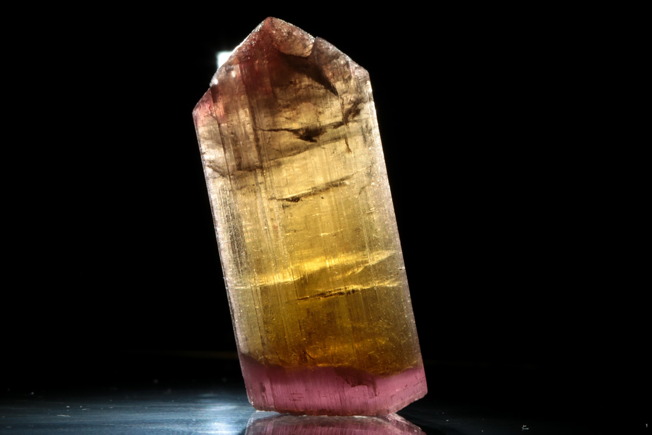 Zweiseitig beendeter Kristall aus grünlich-rosa Turmalin.