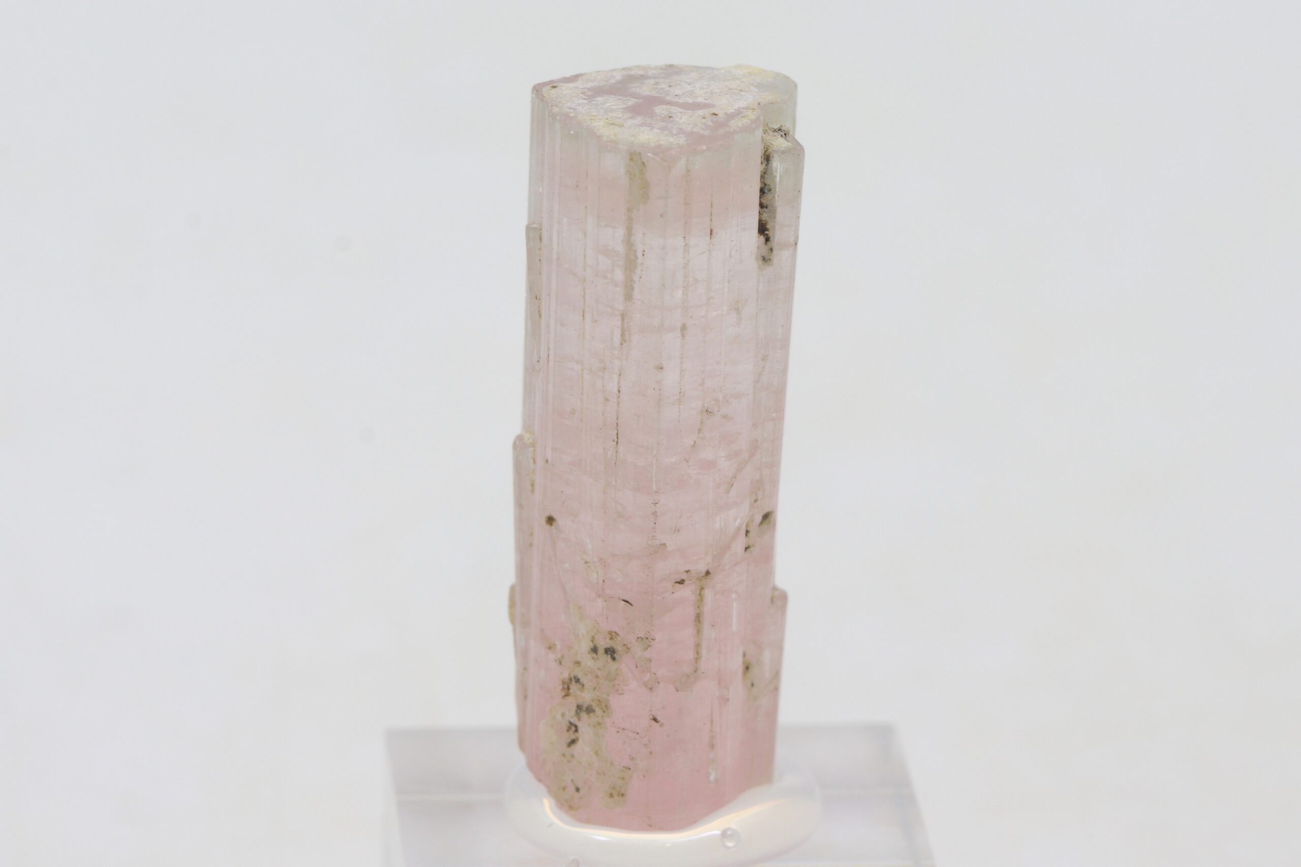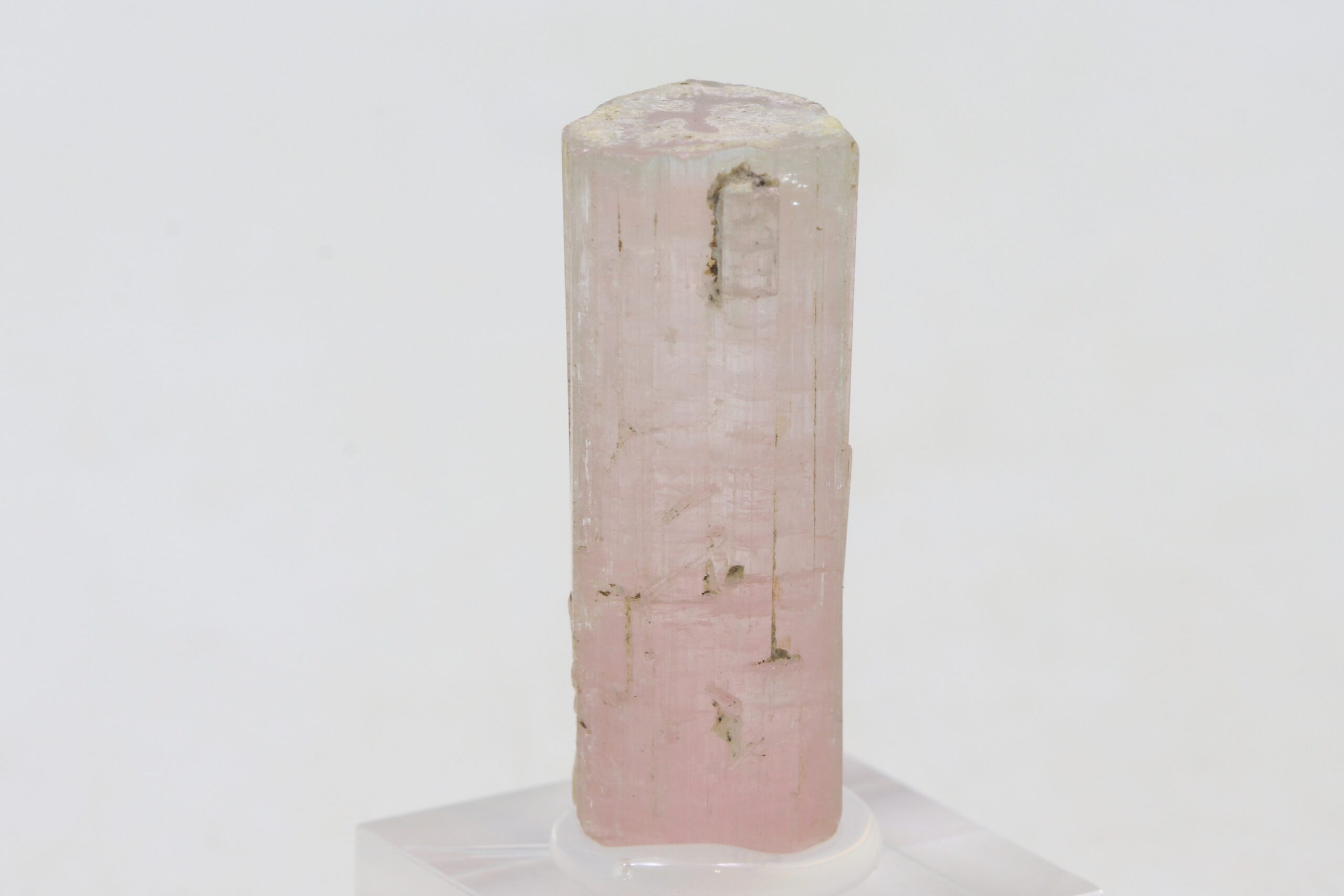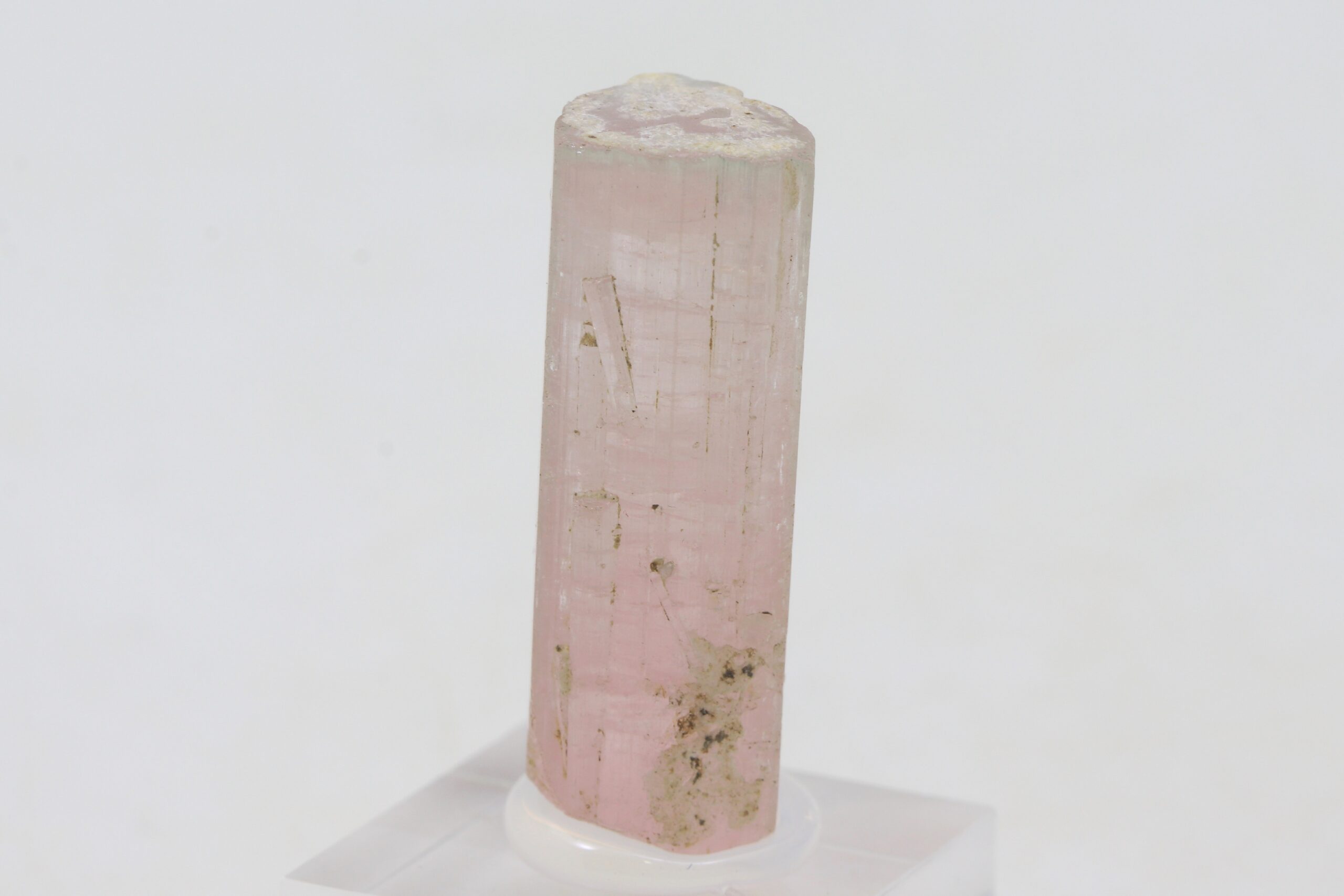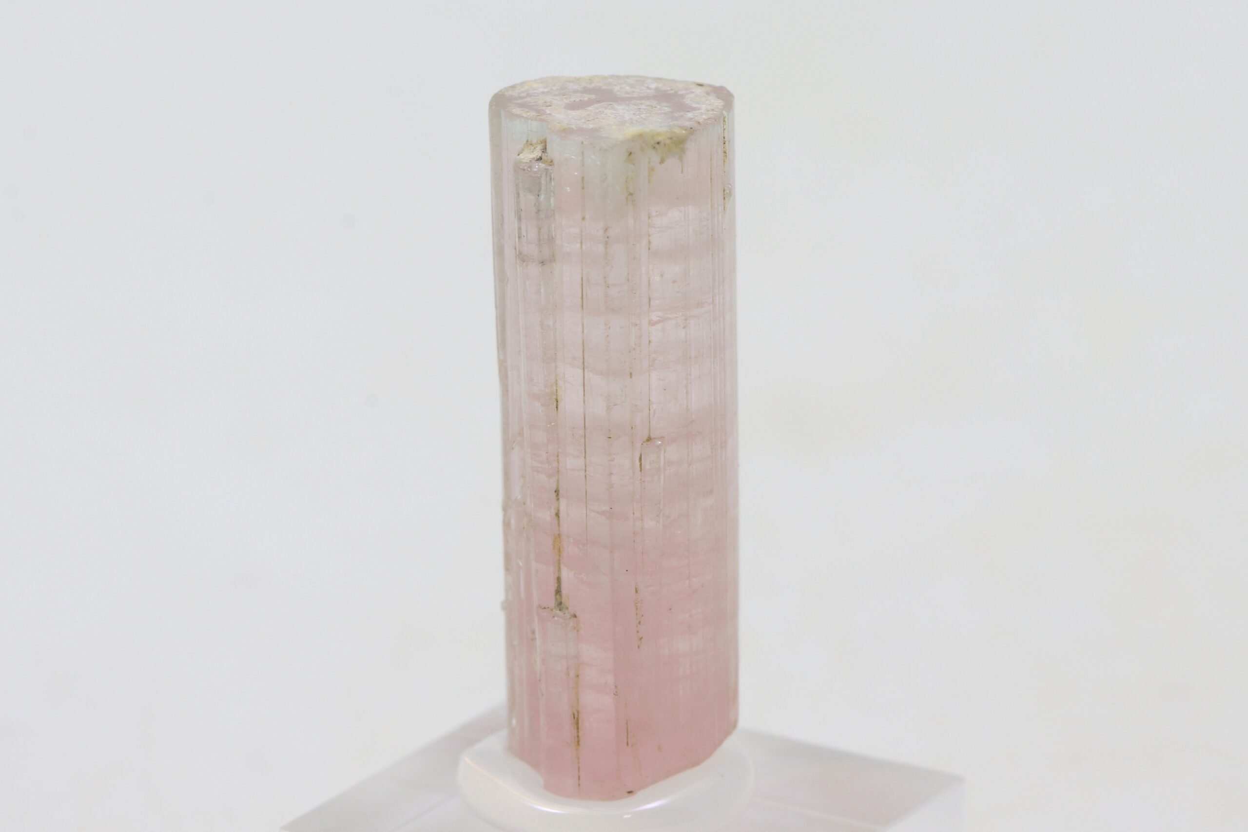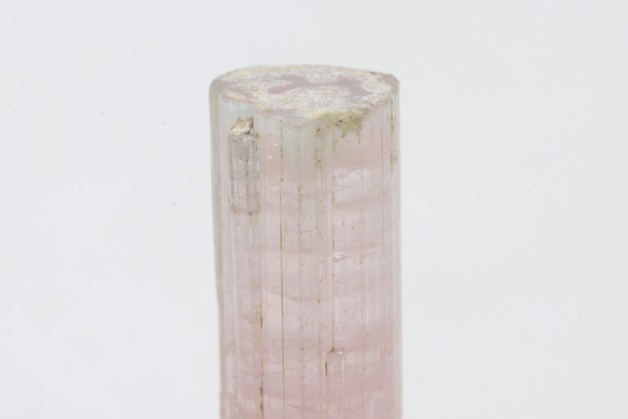 Kristall von blassrosa Turmalin mit blassgrünem Top.