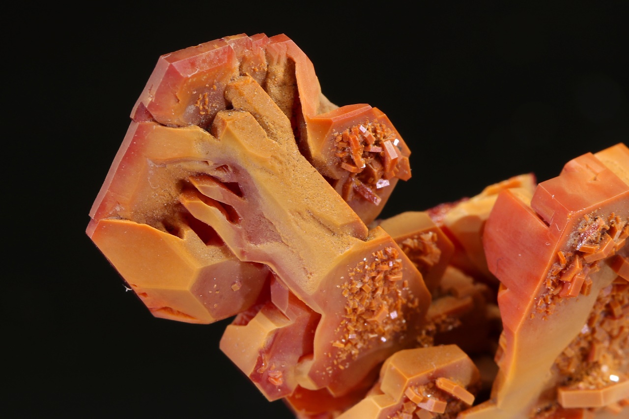 Kleinere Probe von skelettartig entwickelten Vanadinit-Kristallen aus einer berühmten Lokalität.