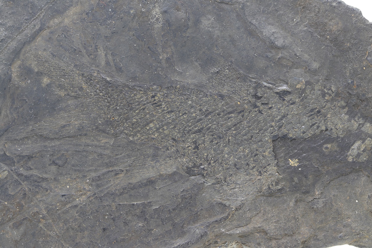 Otisk permské ryby rodu Palaeoniscum v černém lupku.