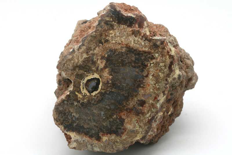 Stück verkieseltes Holz aus dem Gebiet Stará Paka, Tschechische Republik. Ein schönes Exemplar eines polierten Stücks verkieselten Holzes mit einer kleinen Achat-Einlage in der Mitte .
