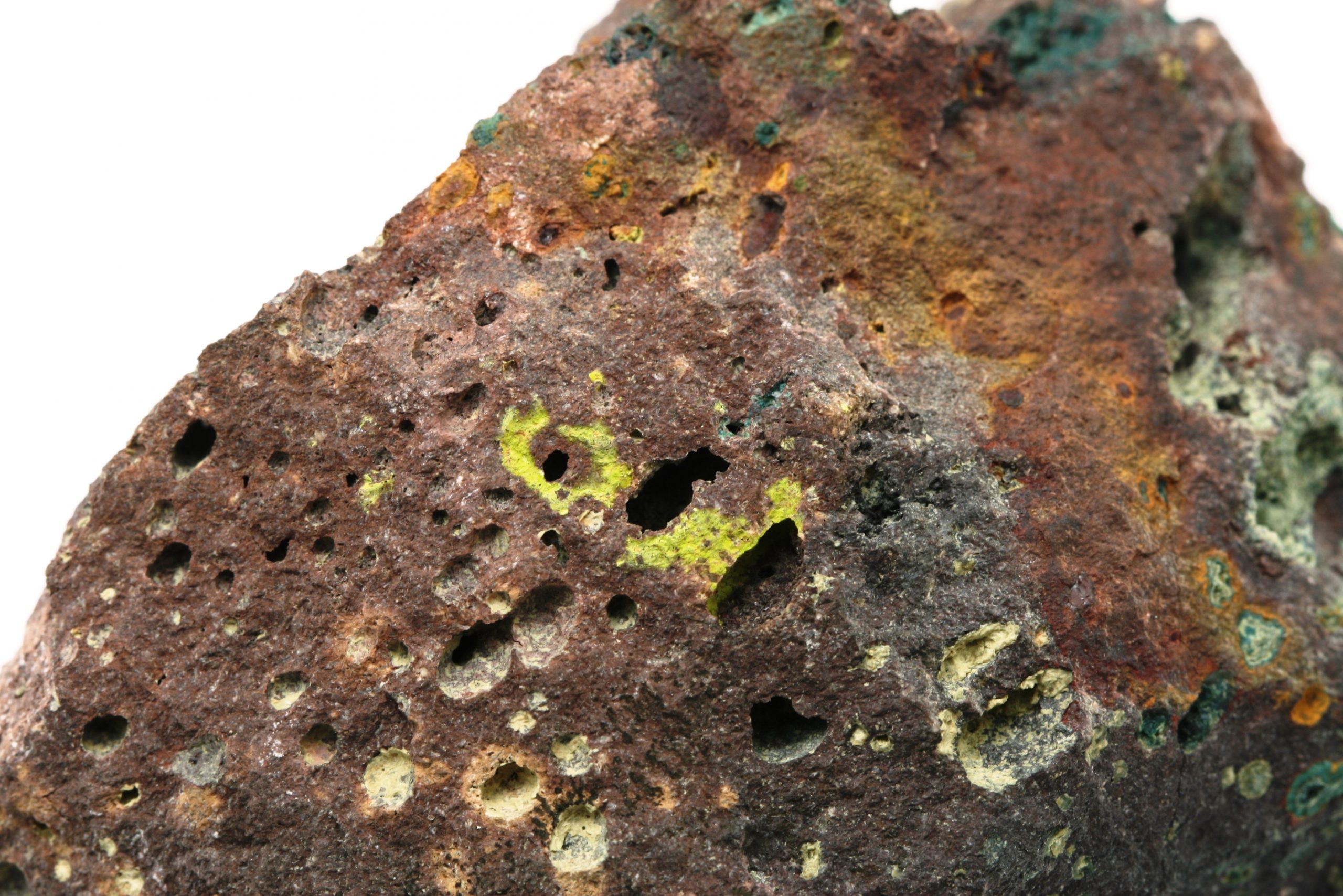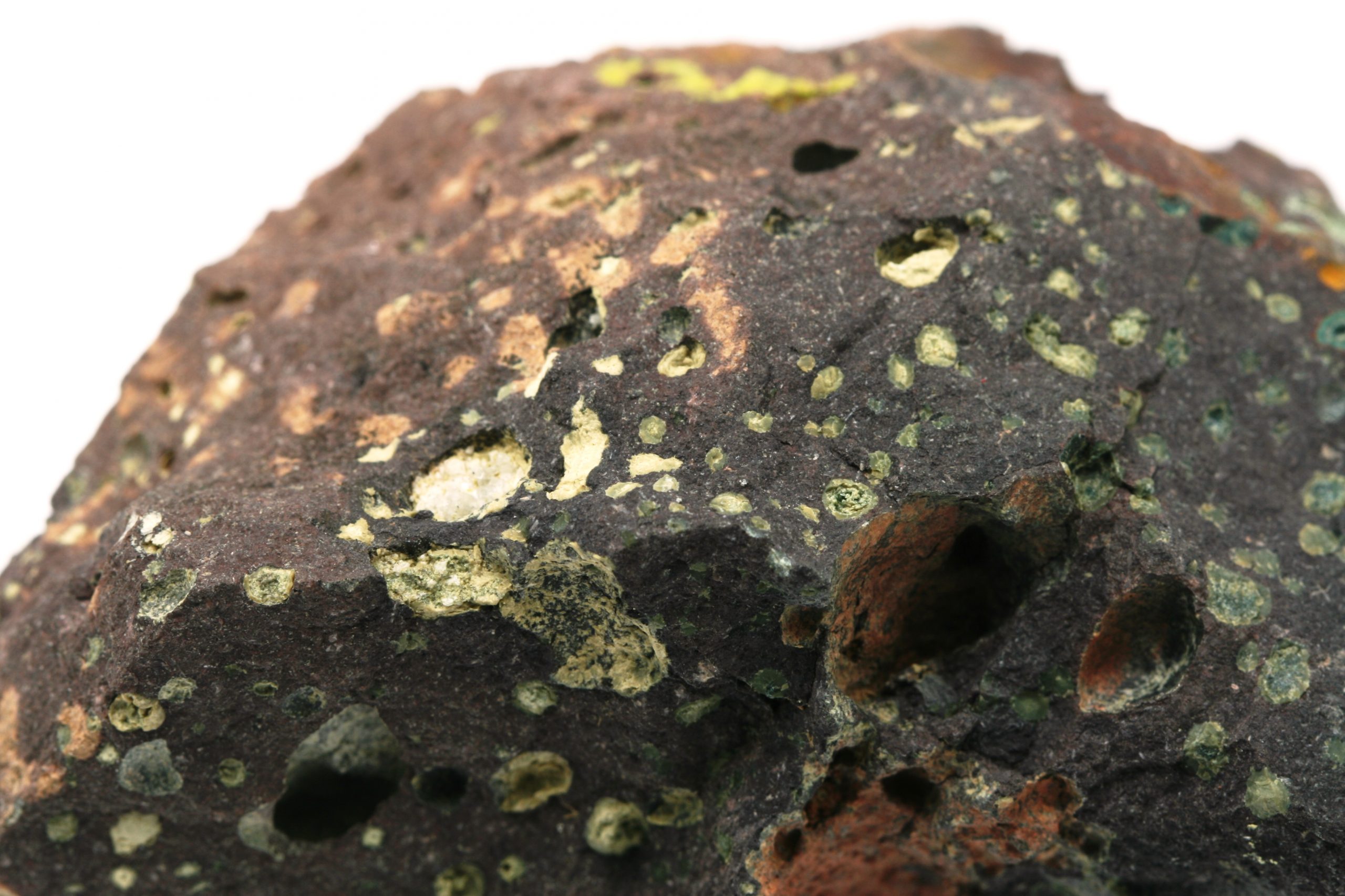 Interessante Stufe von Vesignieitu mit einer Matrix, die mit einer mandelsteinartigen Struktur durchwachsen ist.