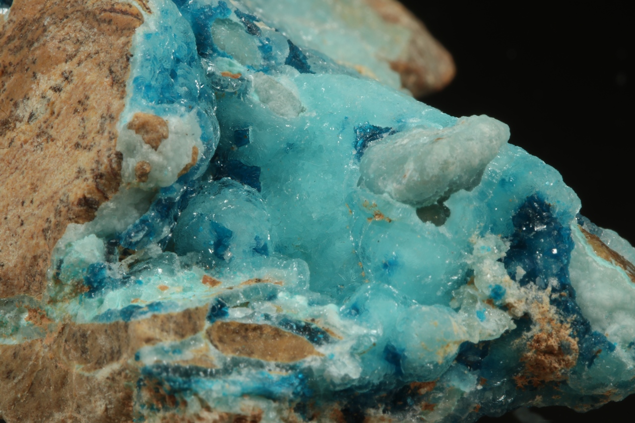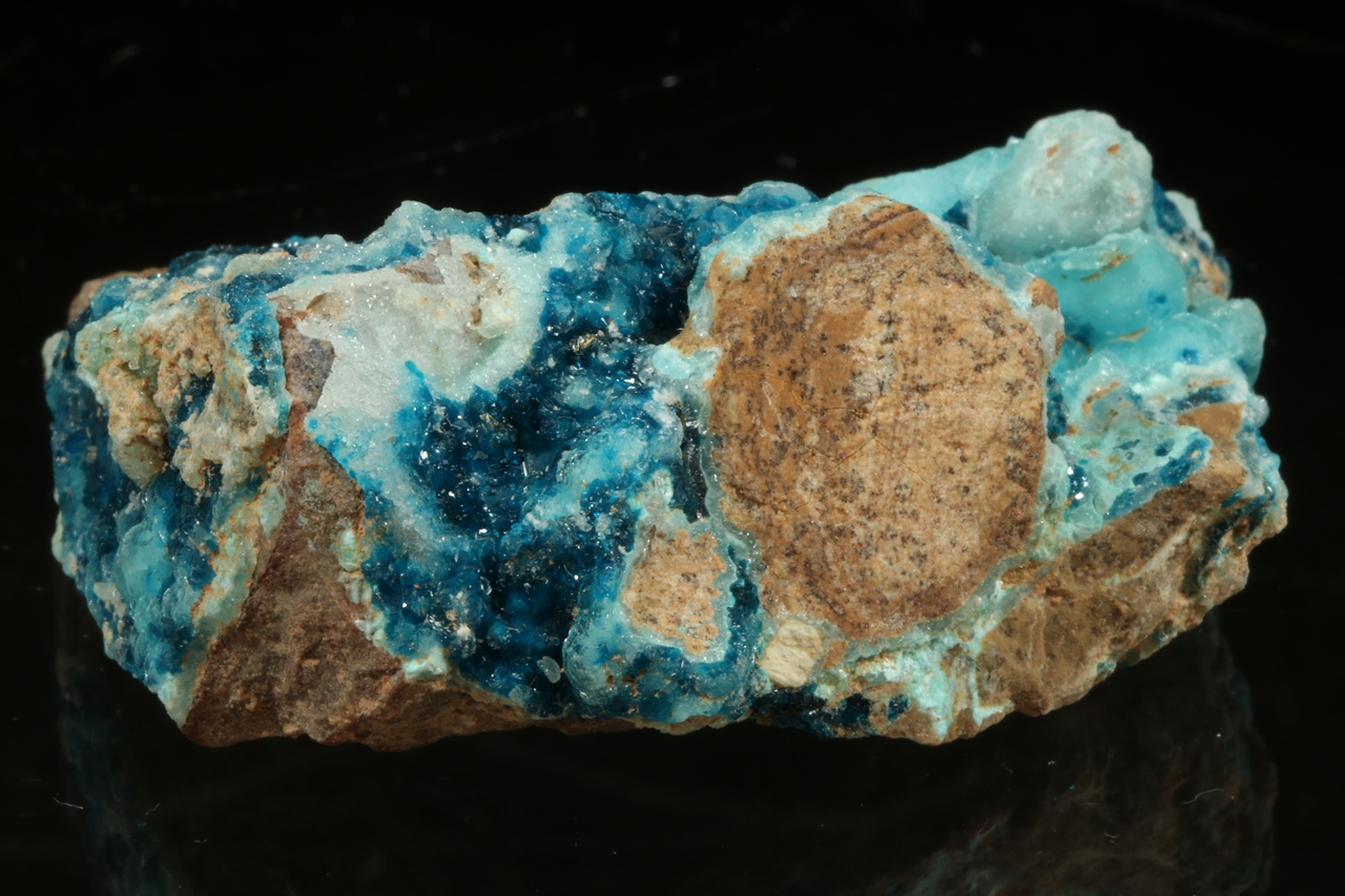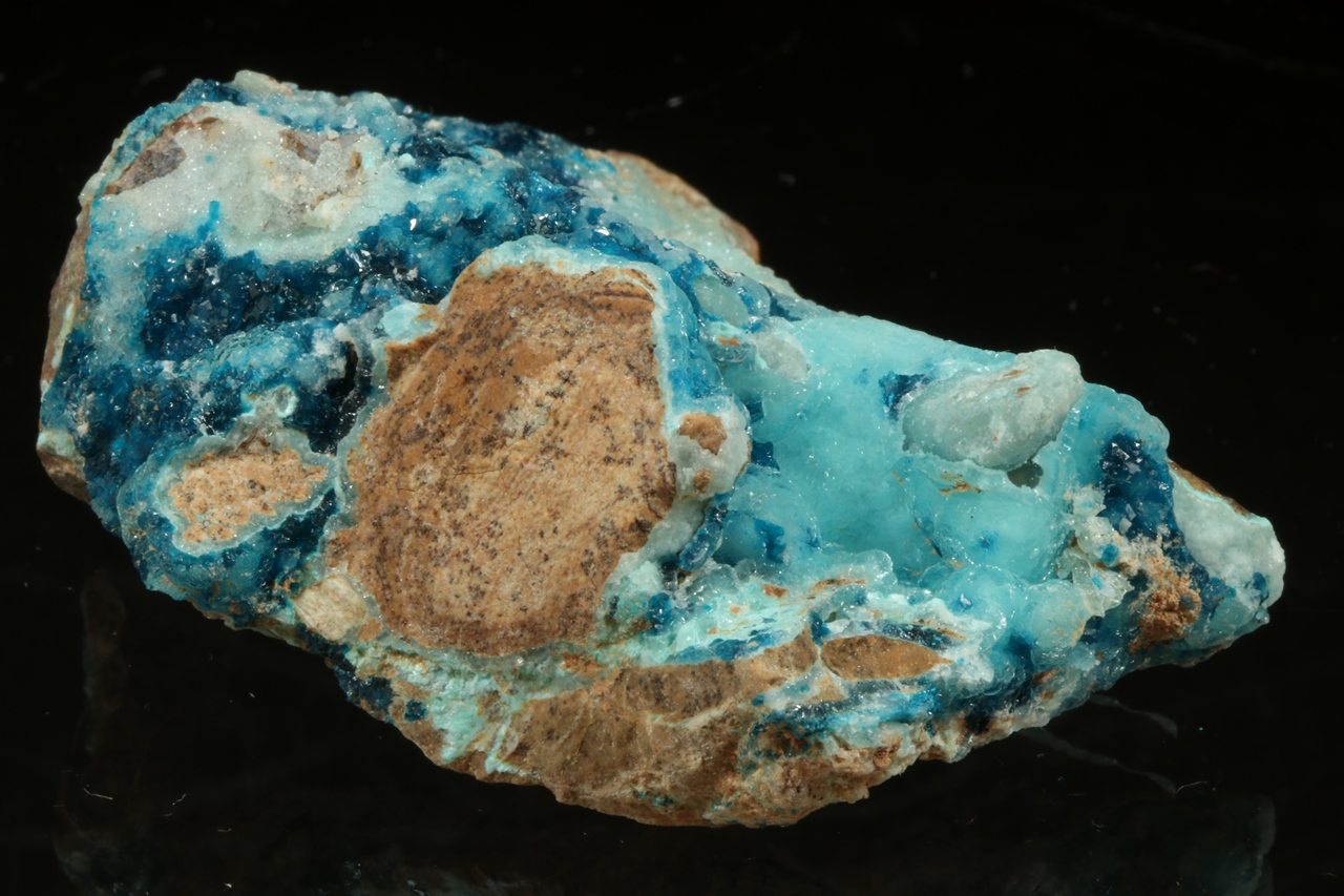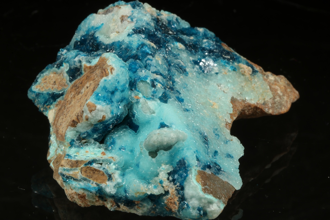 Sytě modrý Veszelyit aus der Demokratischen Republik Kongo ist ein Zink-Kupfer-Phosphat mit Wassergehalt.