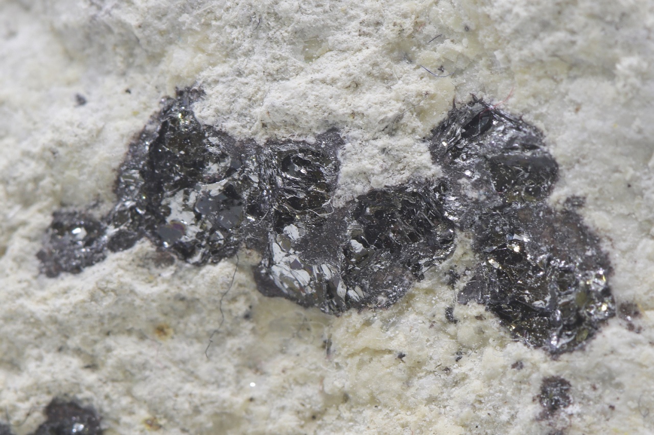 Bis zu 5 mm große, metallisch glänzende, schwarze Vihorlatit-Kristalle von der einzigen und gleichzeitig typischen Lokalität.